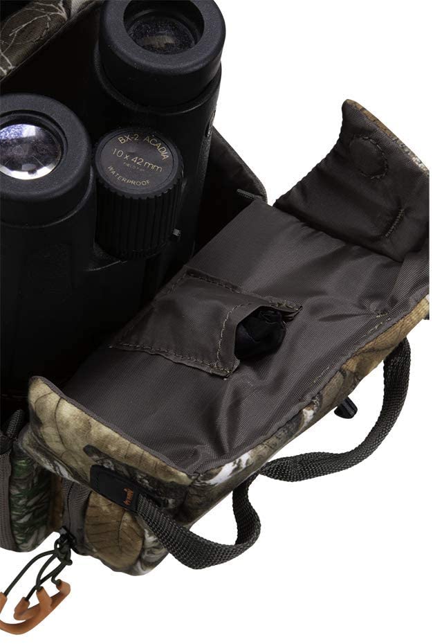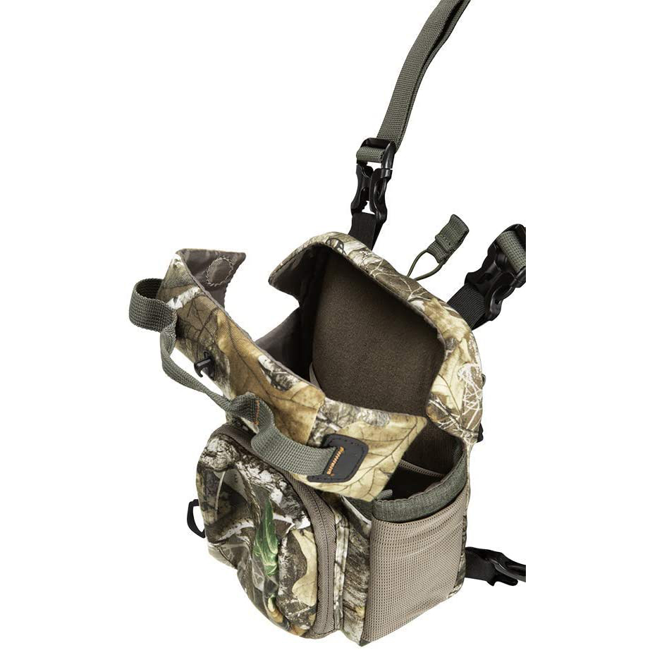 This bino harness pack have a pocket made for a rangefinder along with mesh pockets and a back zippered pocket for other accessories. The harness is fully adjustable making your all-day trek more comfortable.