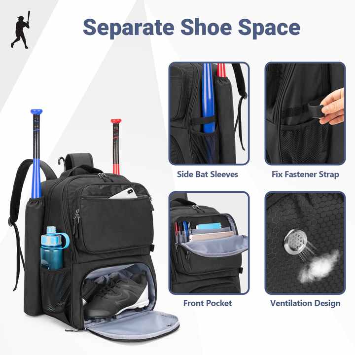 Custom Sports Backpack Outdoor Training Softball Bag Baseball Bat Bag Baseball Backpack with Shoes Compartment |