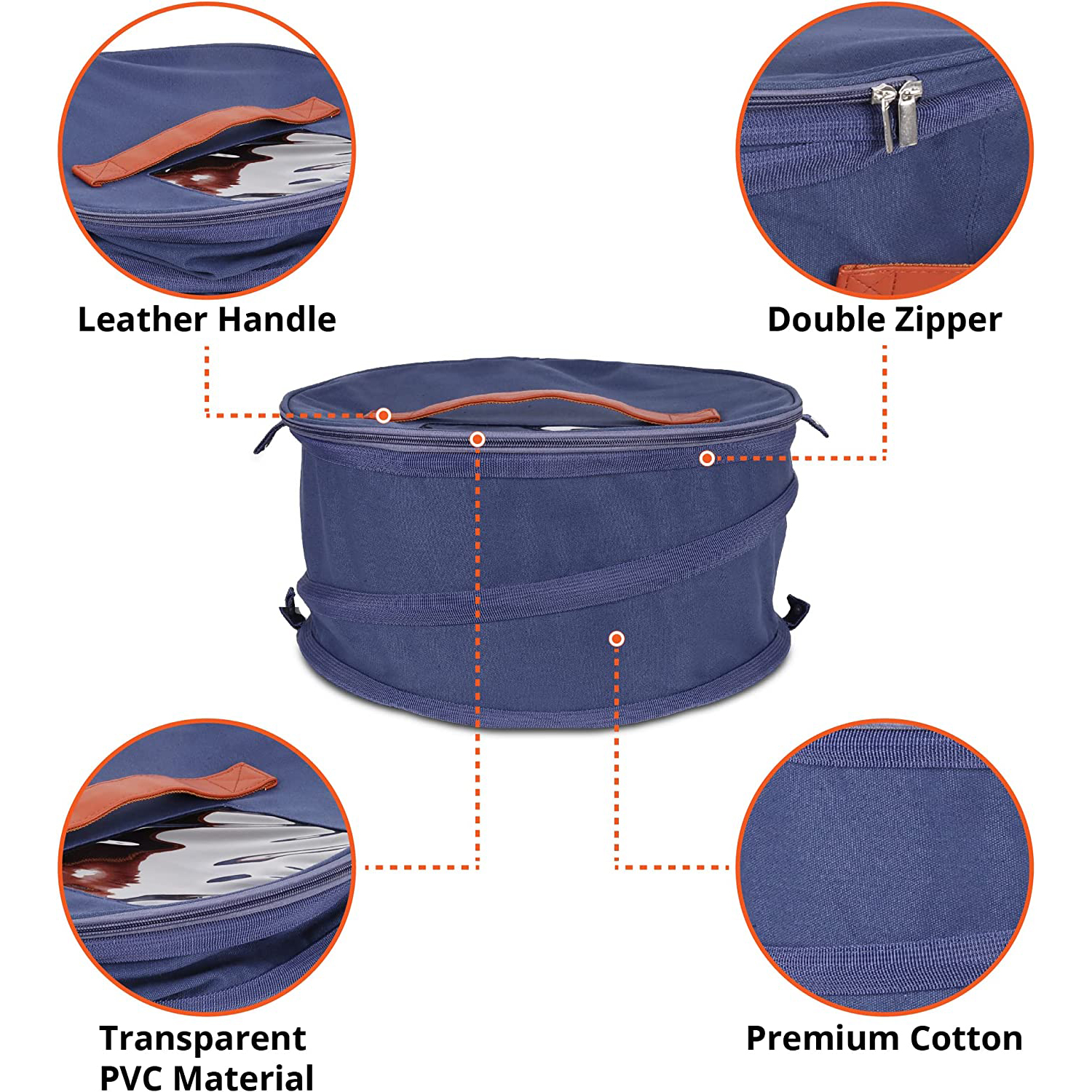 | Description: | Large Foldable Round Hat Storage Organizer with Leather Carrying Handle for Toy Clothes Hat Travel Case |