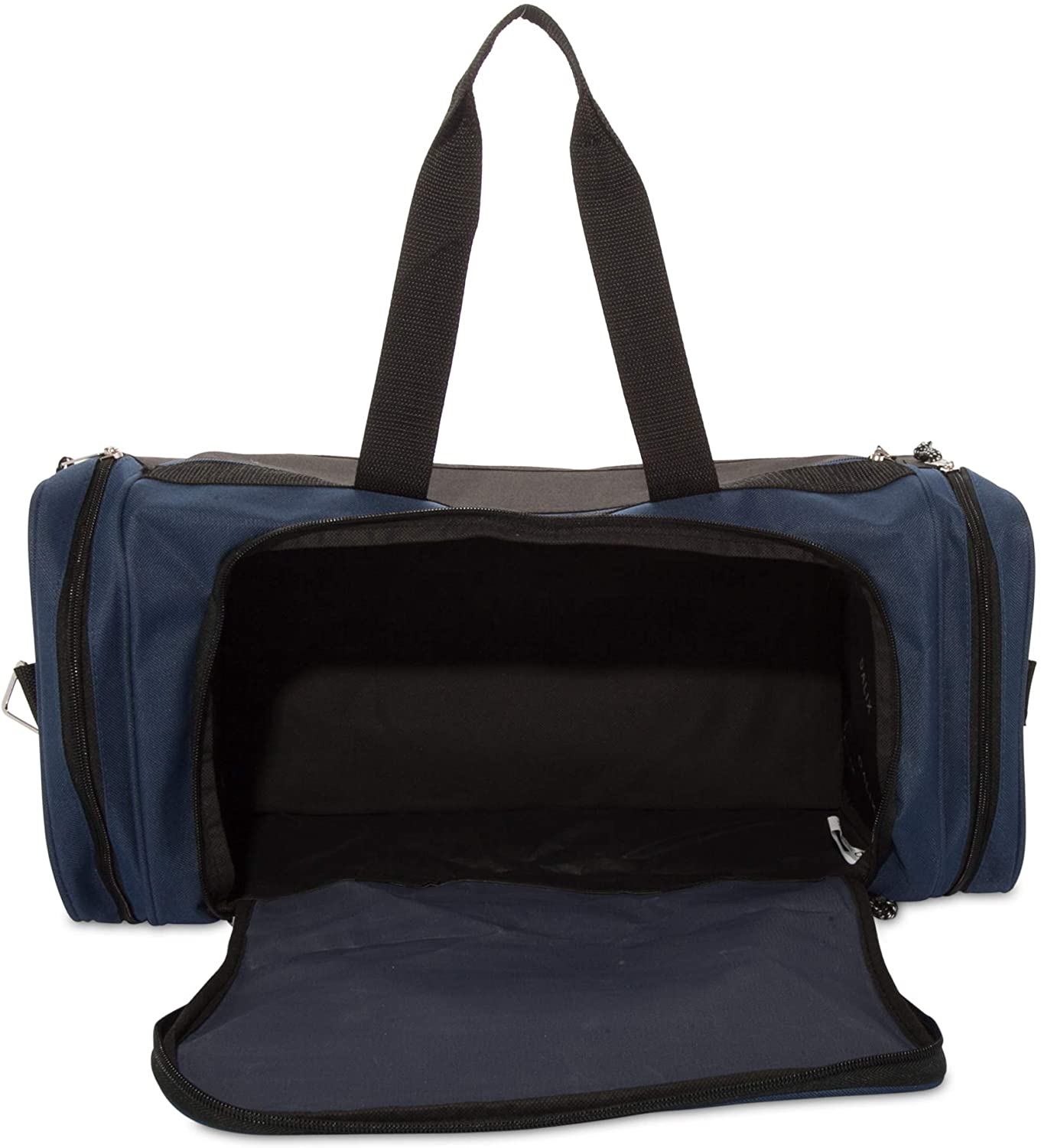 | Feature: | Large Main Compartment for Towels ,Shoes Etc, 1 Zippered Front Pocket for Keys/Mouthguard/Phone/Other, 1 Padded Adjustable Shoulder Strap, 1 Padded Duffel Handle with Hook and Loop Strapping, 2 Side Pockets with Zipper Closure that are for Valuables and Water Bottles, 2 Side Flap Pockets for Easy Grabbing and Fast on the Go Atheletes. |