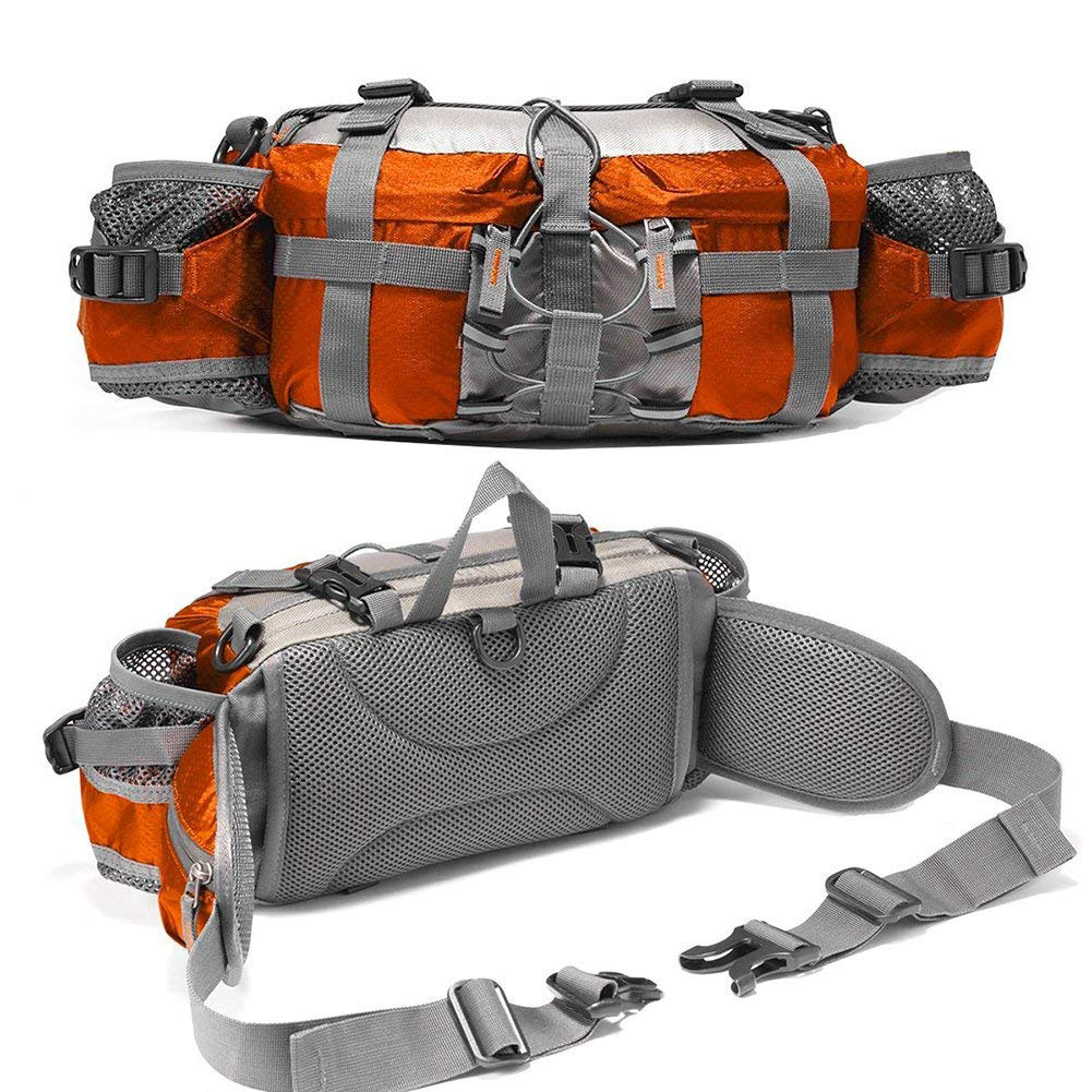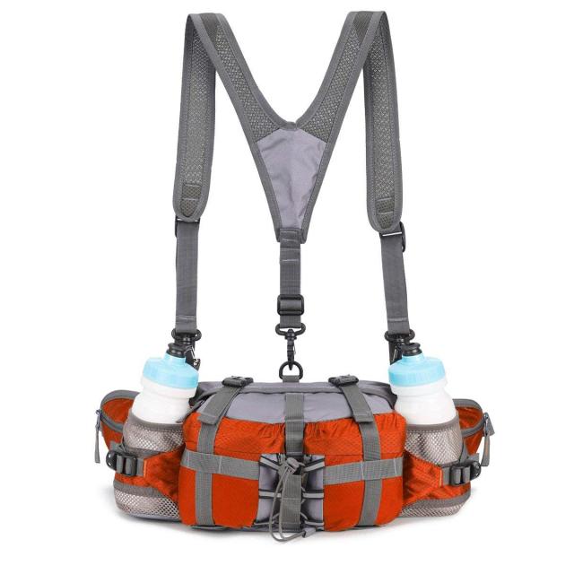 ● Dual water bottle holders,two exterior front zipper pocket,two exterior side zipper pocket to keep your stuff separate and organized. ● A light and practical waist pack with to carrying enough water and gear for a day hike, camping, cycling , fishing etc. |