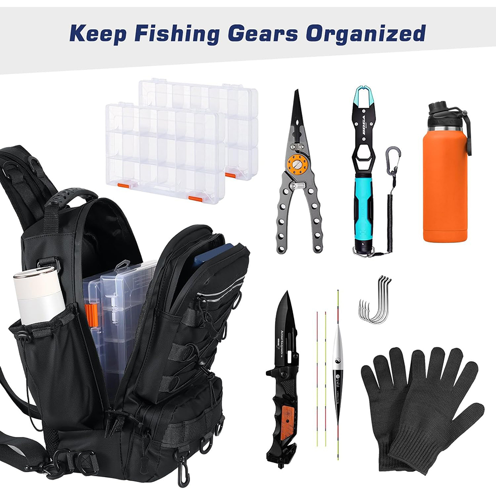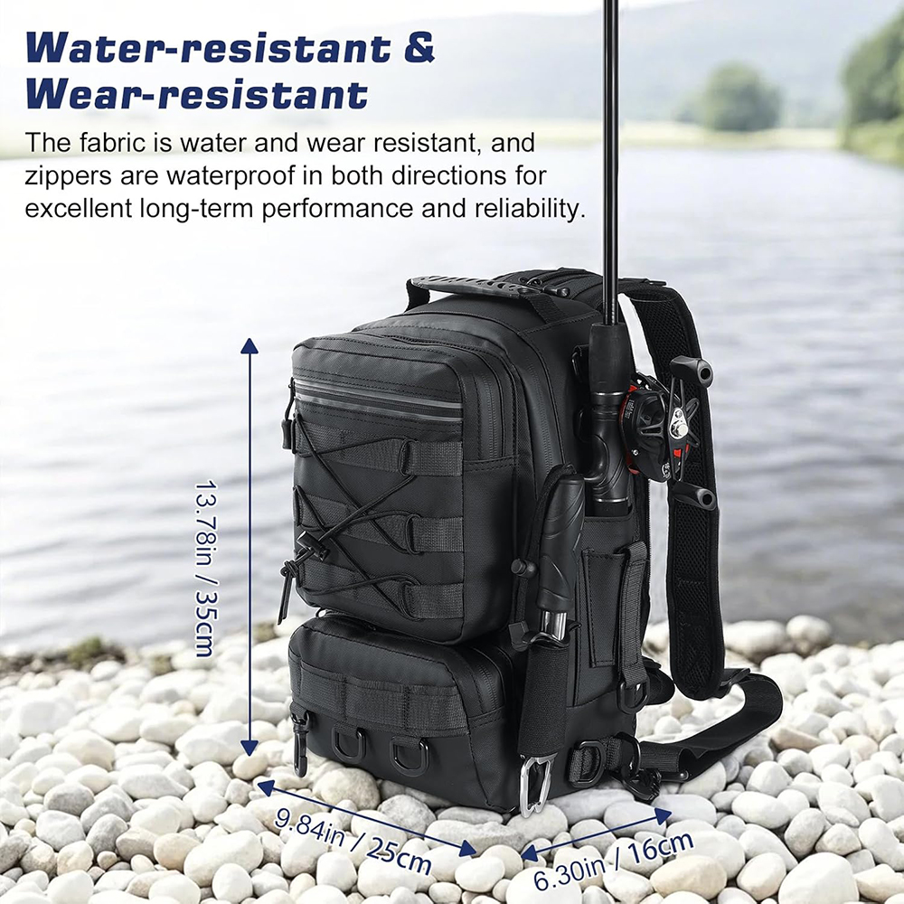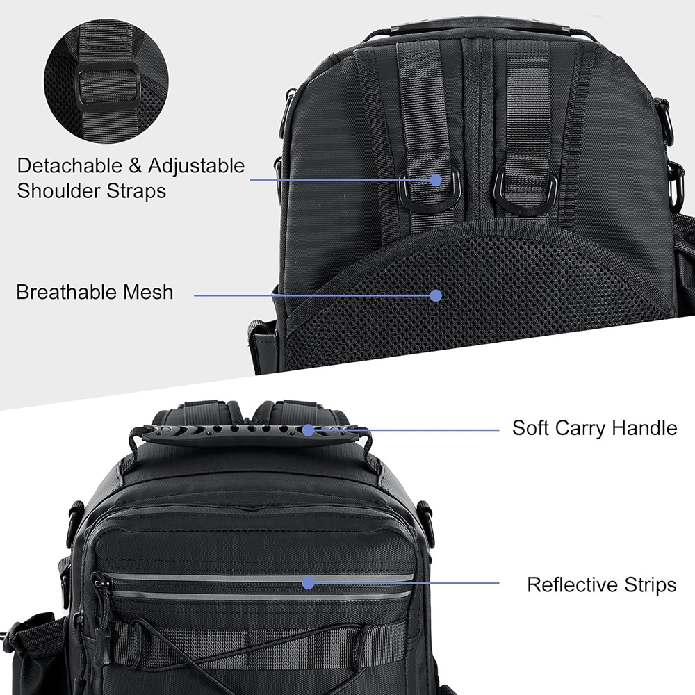 2025 New Fashion Waterproof Fishing Tackle Storage Bag Fishing Backpack Sling Bag with Rod Gear Holder |