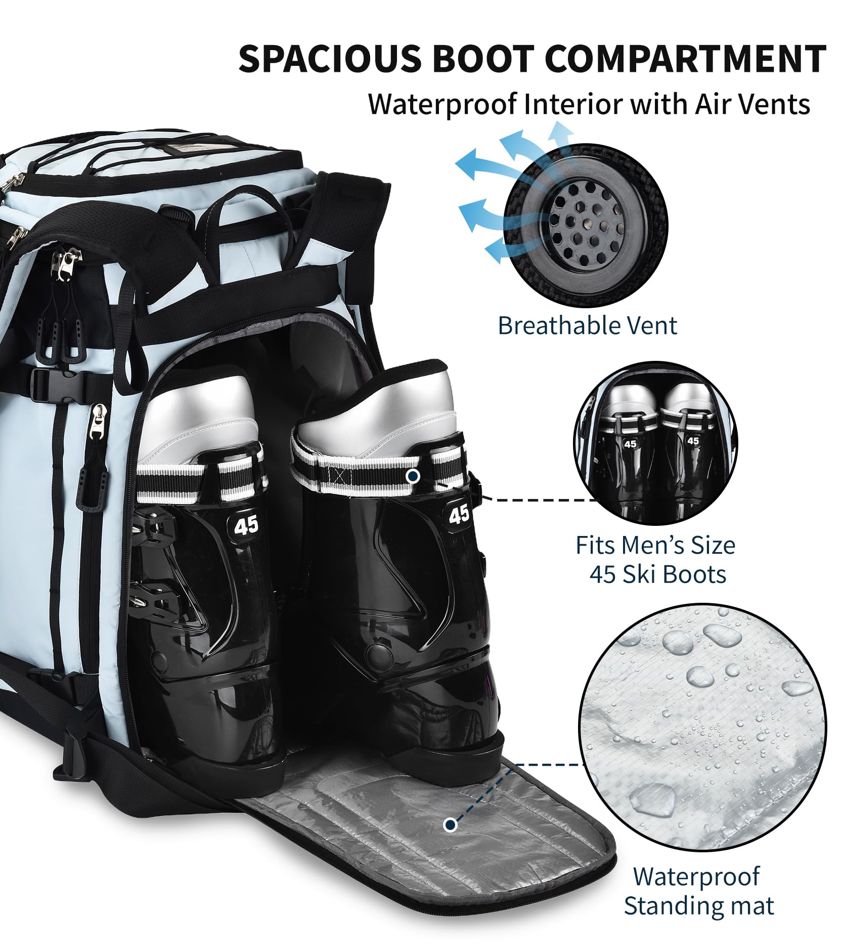 * Multi-functional Design for Ski Gear Protection——The back panel folds down to create a boot-changing mat, keeping your feet