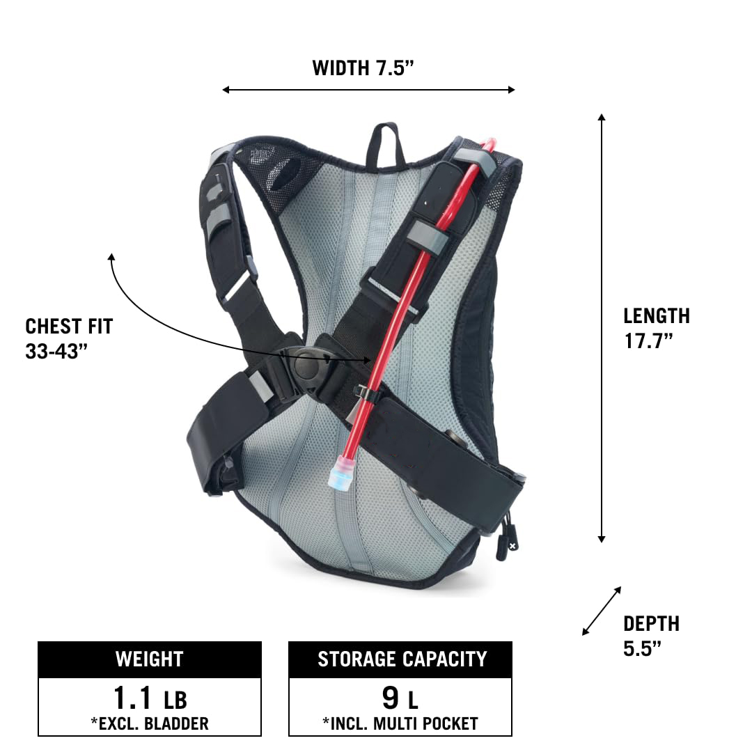 * MADE FOR ACTION: Pack weight .68 lbs (309g) excluding bladder. The lightweight mesh back panel and ventilated shoulder straps