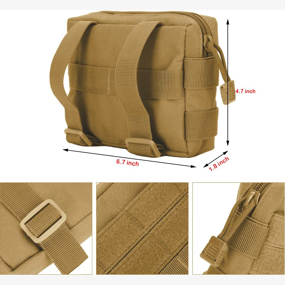 | Feature: | The tactical attachment bag with molle system and 2 buckle straps on the back could be attached to tactical backpack, combat vest or put it on your bike,add it to the vest of your service dog. Excellent for adding additional storage, easy to install and hold whatever is needed, would be a great gift for backpackers. |