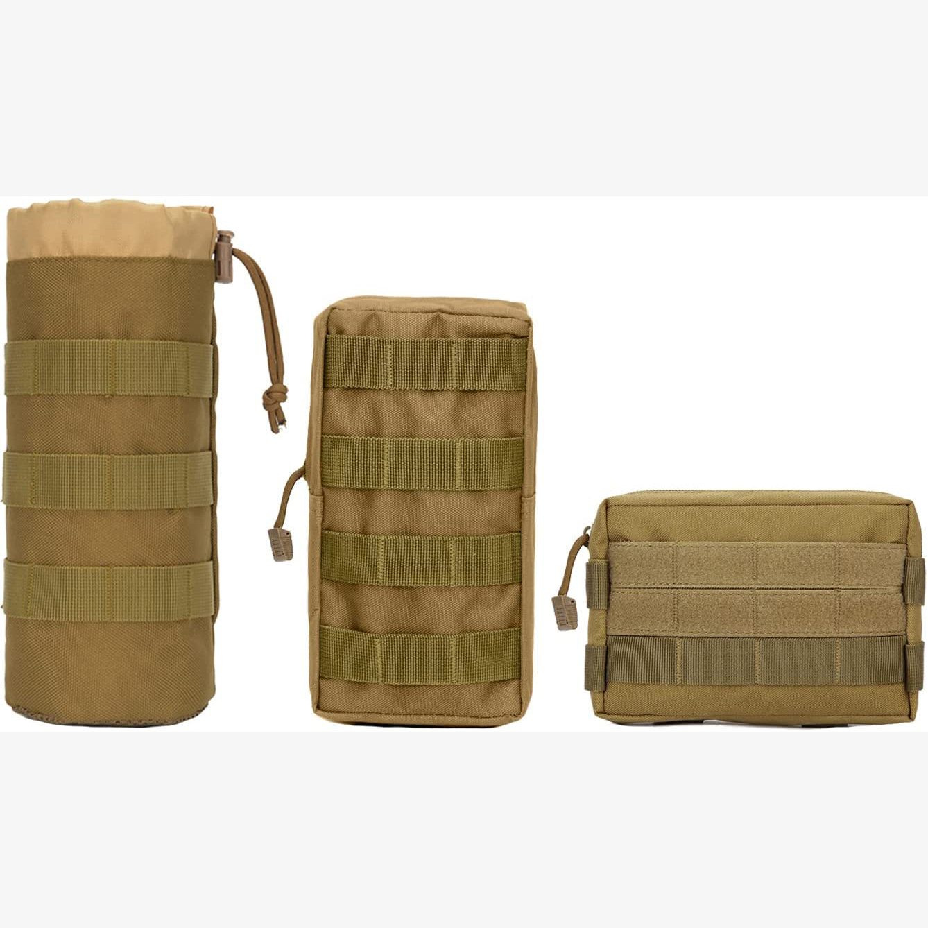 | Description: | 3 Pcs Molle Pouches Drawstring Water Bottle Pouch Tactical Molle Waist Bag EDC Utility Bag Pack |
