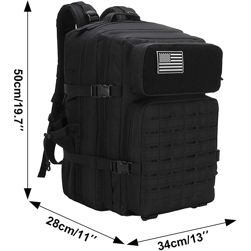 | Feature: | 1.Size: 13"*20"*11" / 33*50.5*28CM (W*H*D). 40L large capacity. Military backpack is made of high density fabric--durable and water-resistant. 2. Ventilated mesh padded back area & shoulder strap, breathable and comfortable. 3. Military backpack has hydration compatible that works great for a hydration bladder (backpack didn't include hydration bladder) as hydration backpack or outdoor camping hiking backpack. 4. Durable & Comfortable: With dual-zippered closure and made of high density double-stitched 500D Nylon fabric, this pack is durable water-resistant. The back area & shoulder straps with adjustable chest strap are ventilated mesh padded design, breathable comfortable. |