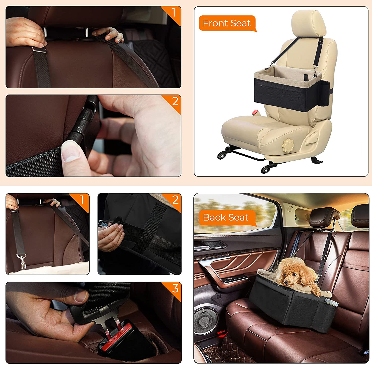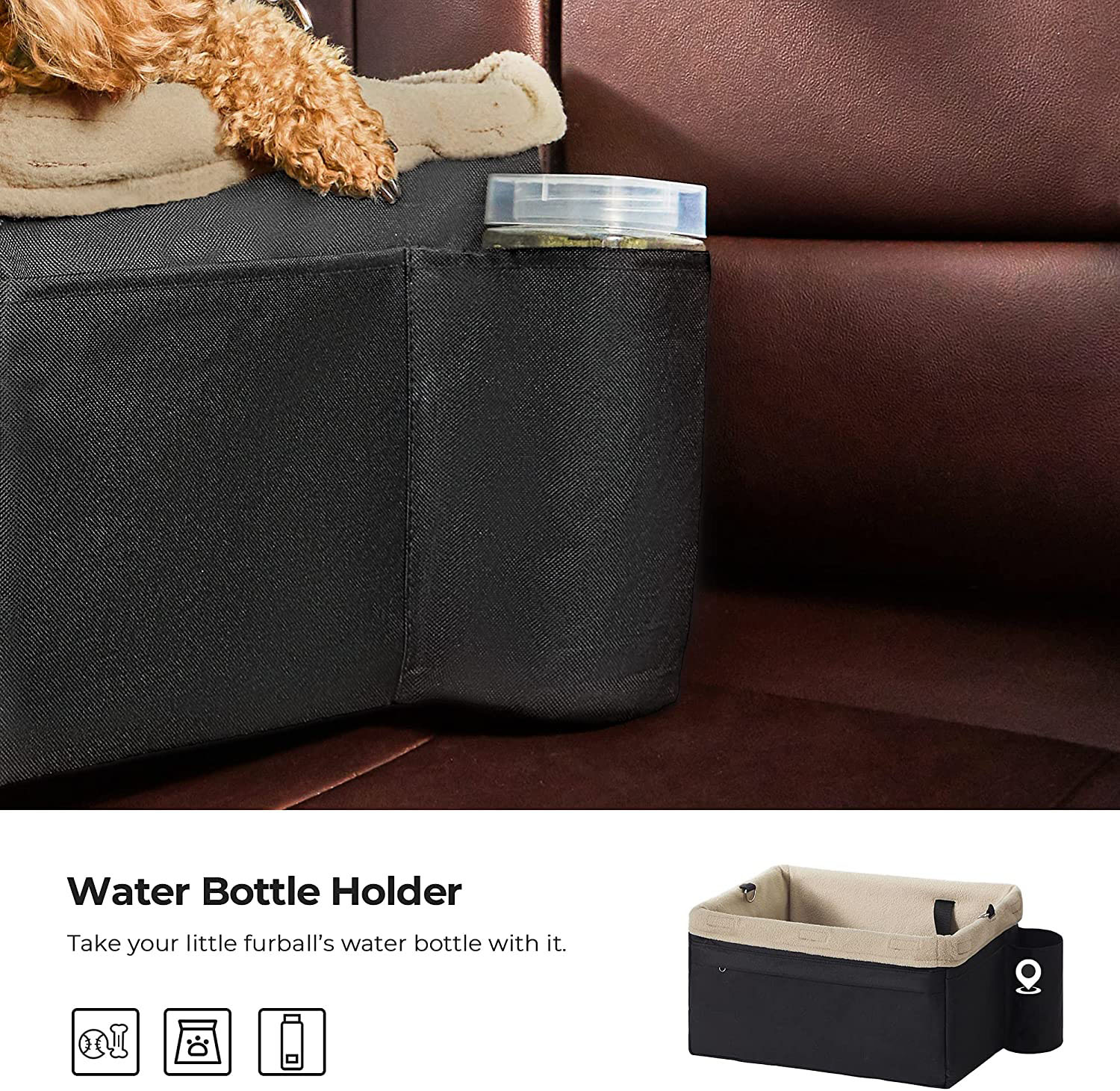 | Feature: | 1.Let's Hit the Road! Want to travel with your dog? This dog car seat is ready! Just unfold it, put the bottom board in, attach it to your car seat, adjust it to an ideal height, and enjoy the view on the way! 2.When Your Furry Pal Gets Hungry: Take its food and water from the pockets to fill its belly. Your dog will be happy to keep everything it loves by its side, snack and water bottles in the 3 side pockets, and toys in the large front pocket. After the Journey: Cleaning and storage won't be a problem at all. 3.Easily remove the liner for cleaning, fold the dog booster seat flat, tuck it in the corner of your home to save space, and then wait for the next happy trip! |