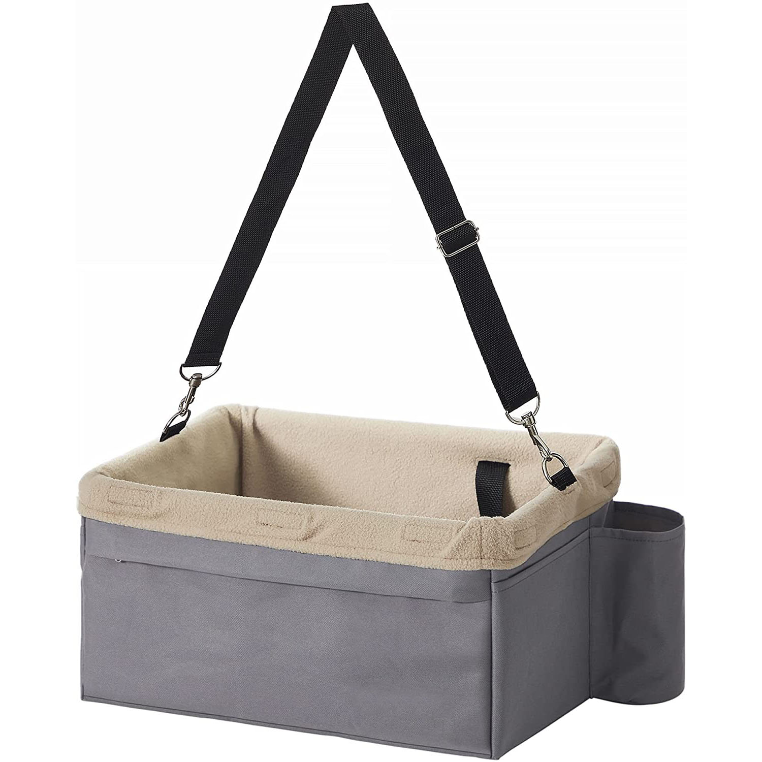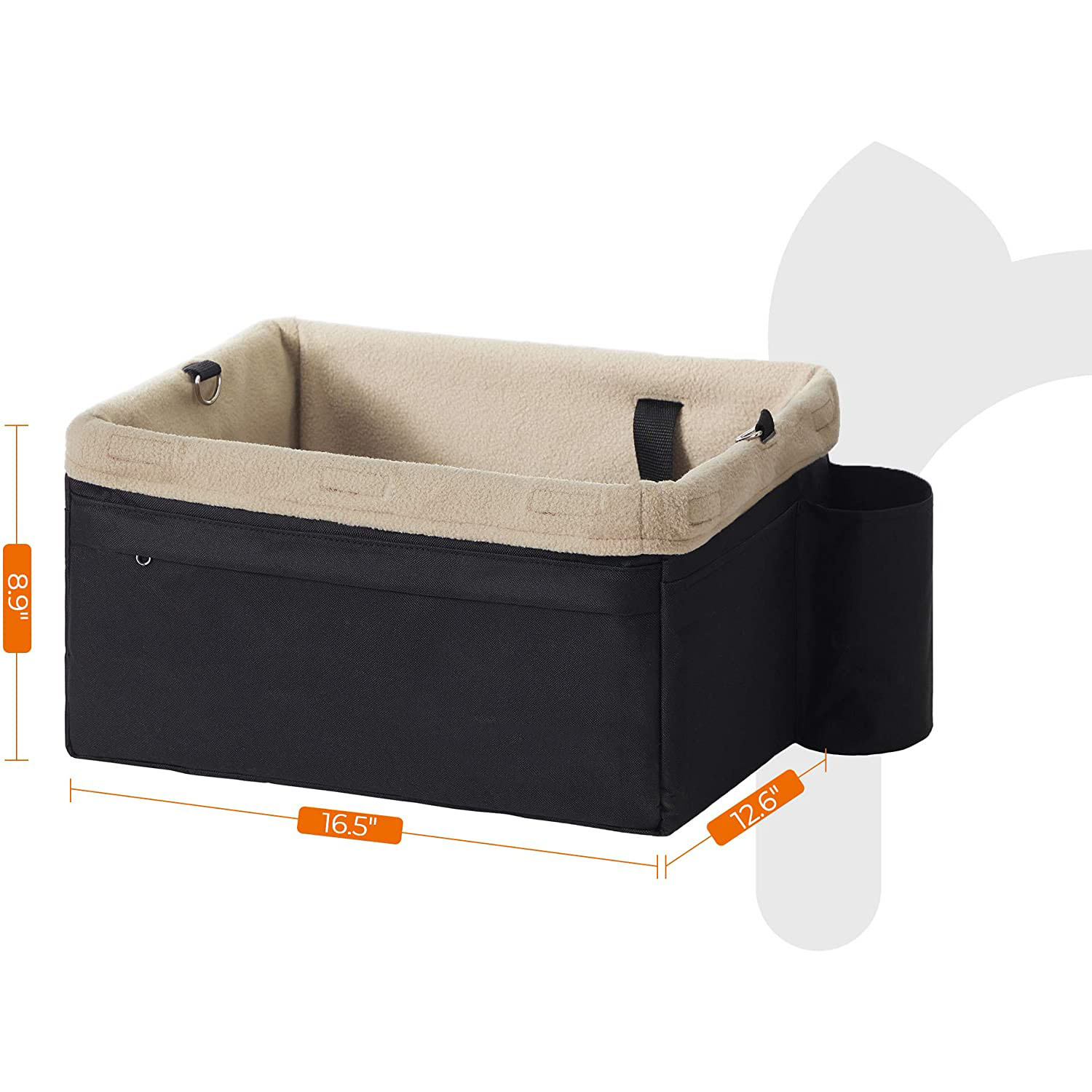 What You Get: A 16.5”L x 12.6”W x 8.9”H pet booster seat for small dogs, a removable fleece liner for comfort and easy cleaning, foldable design for easy storage, and adjustable belts to fit both front seats and back seats of different cars.
