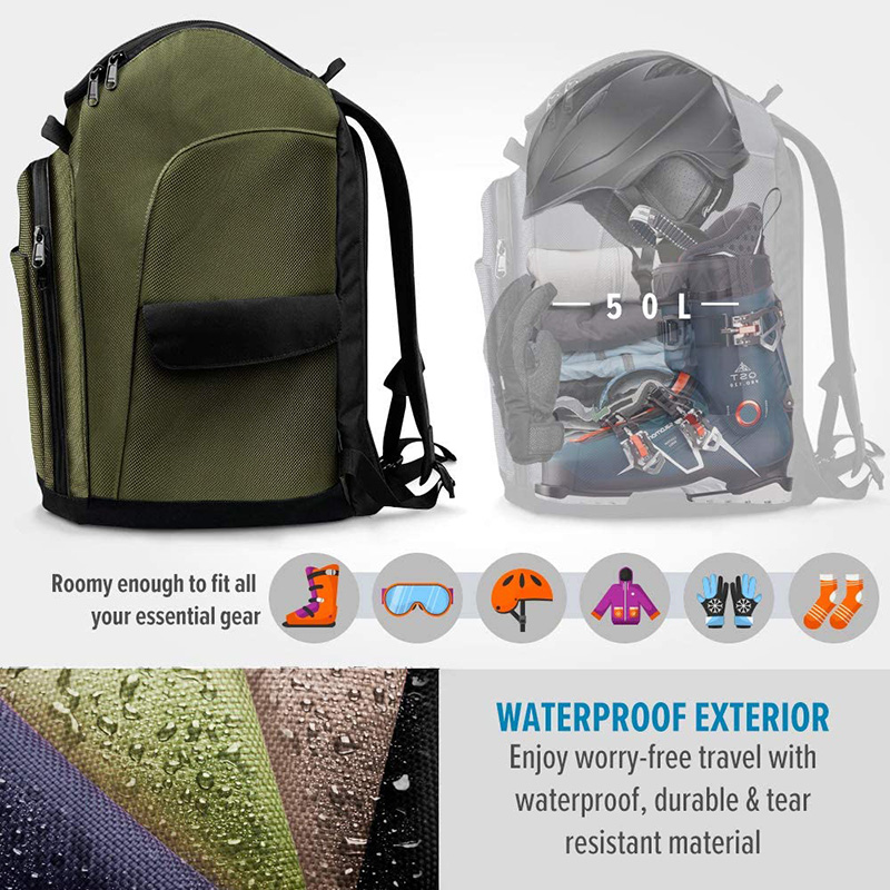 | Description: | Custom 50L Ski Boot Bag Large Capacity Ski Snowboard Boots Travel Backpack with Helmet Accessories Compartment |