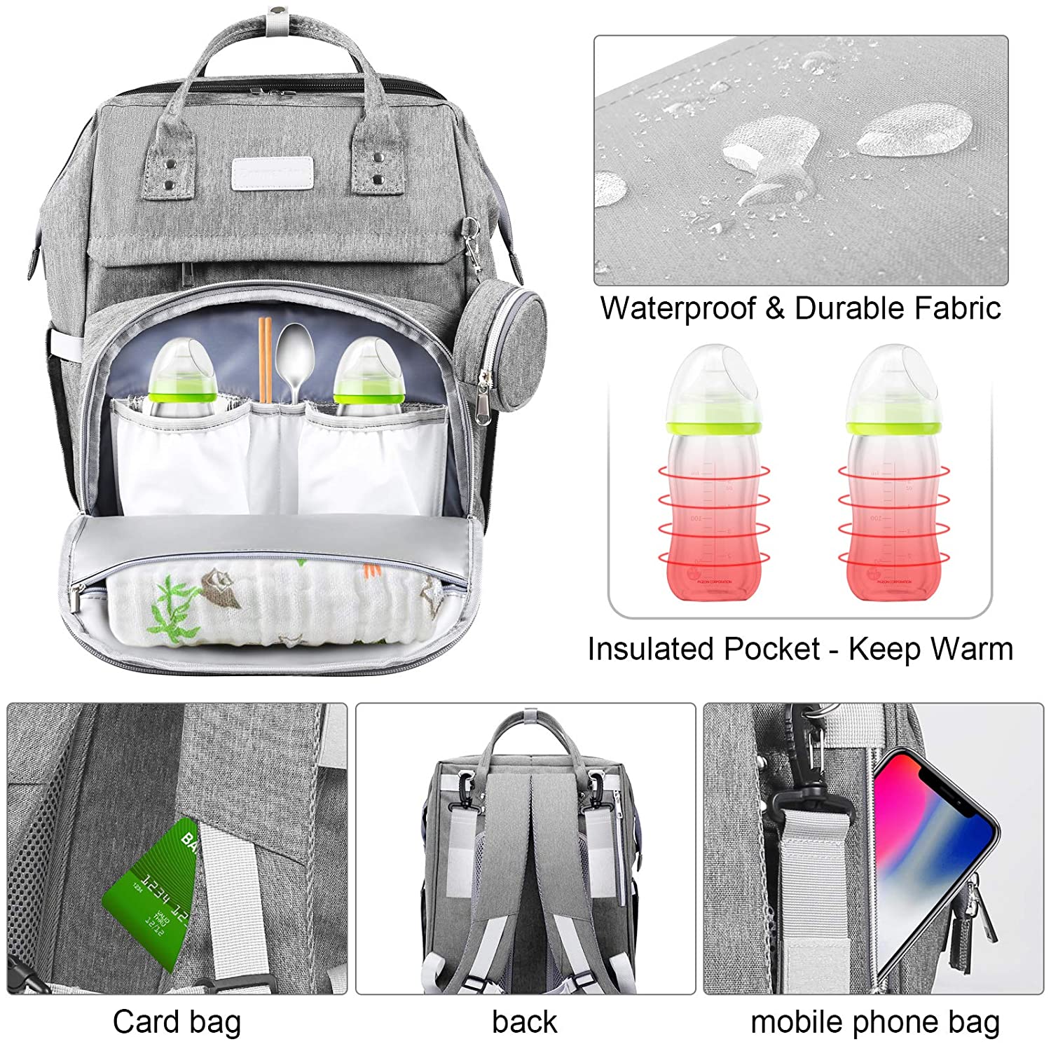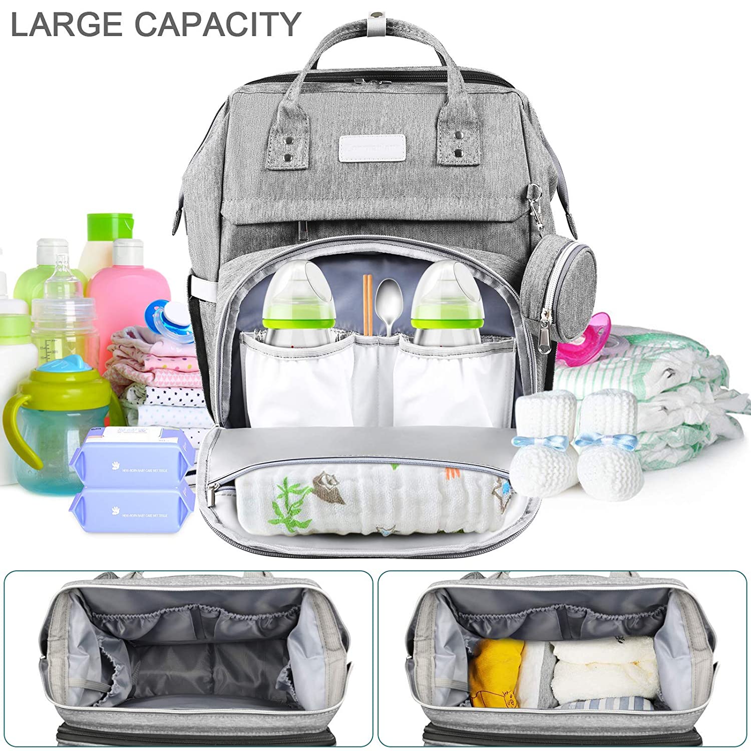 | Feature: | 1. Large Capacity with Multifunctional Pockets: Dimensions of the baby diaper bag backpack: 12.5×8.3x17 inches. (Gray) diaper bag large capacity & wide open backpack diaper bags with 17 independent pockets for diapers for baby boy or girl diapers, With scientific partition, The interior zipper pocket is waterproof for wet wipes, diapers or towel, would not immerse to other pockets. And have Insulated pockets that can warm baby bottles. Diaper backpack is large enough to carry more baby essentials. |