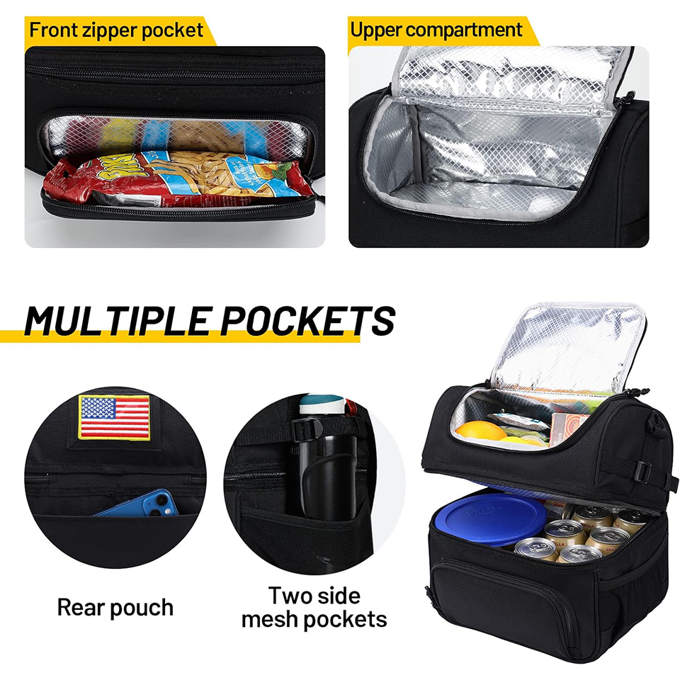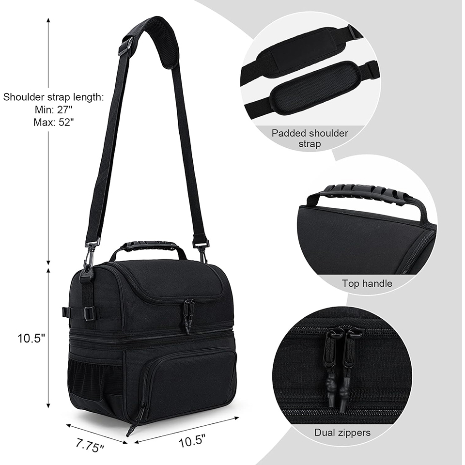 Custom Printed Portable Dual Compartment Lunch Bag Insulated Leakproof Cooler Bag Tote with Shoulder Strap |