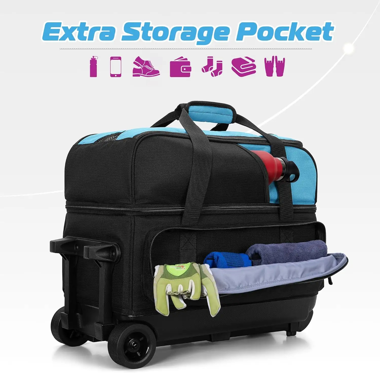 | Description: | Custom logo Large Capacity 2 Balls Separate Shoe Compartment Trolley Bowling Ball Duffel Bag Bowling Bag with Wheel |