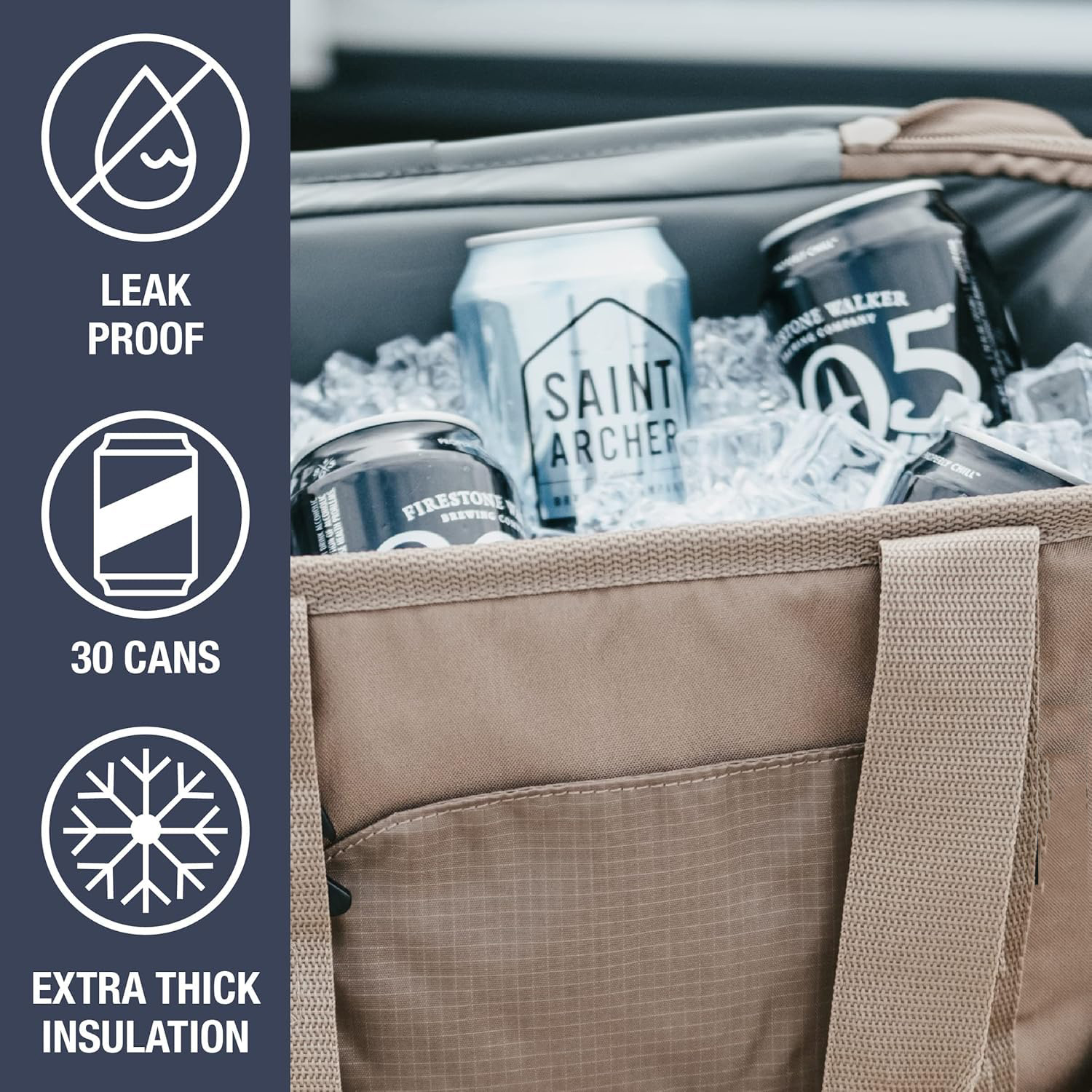 hard cooler, making it one of your top beach necessities or camping essentials. Our insulated coolers include a bottle opener, multiple pockets & are made from recycled materials