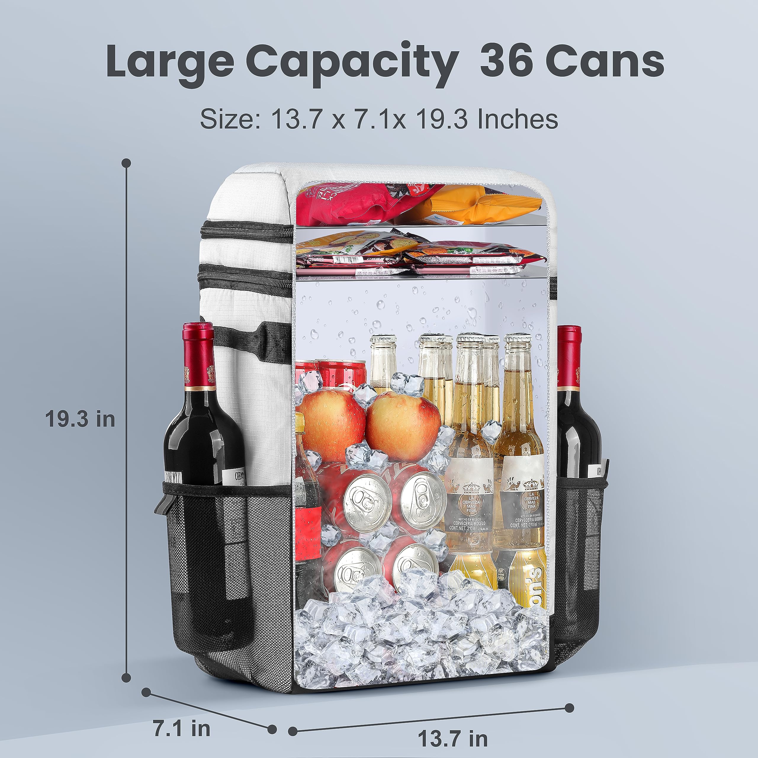 * 【 】Product size: 19.3''x13.7''x7.1"( H x L x W) . ZAKEEP cooler backpack holds up to 36 Can(330ml)