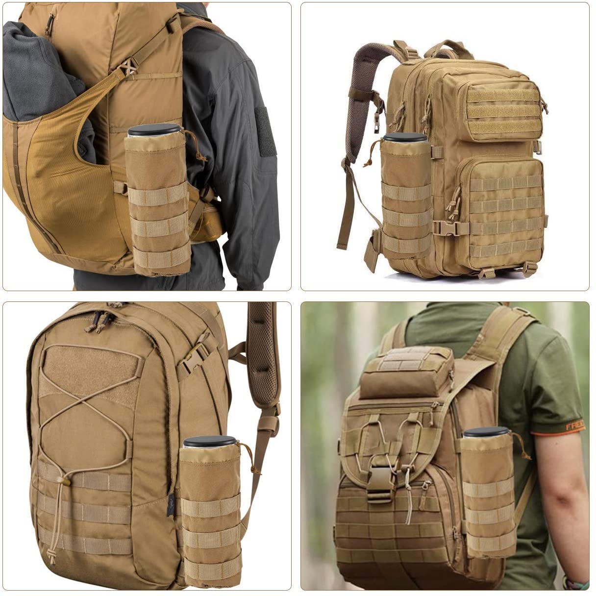| Feature: | This Tactical Water Bottle Bag is Easy to Connect to other Moller Equipment and is Easy to Reinforce to Prevent the Bottle from Pulling Down or Turning Around Because of Gravity when Walking or Jogging. |
