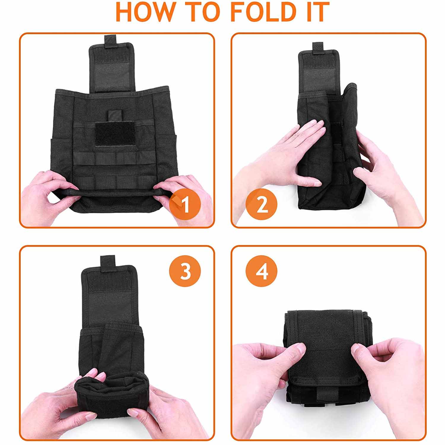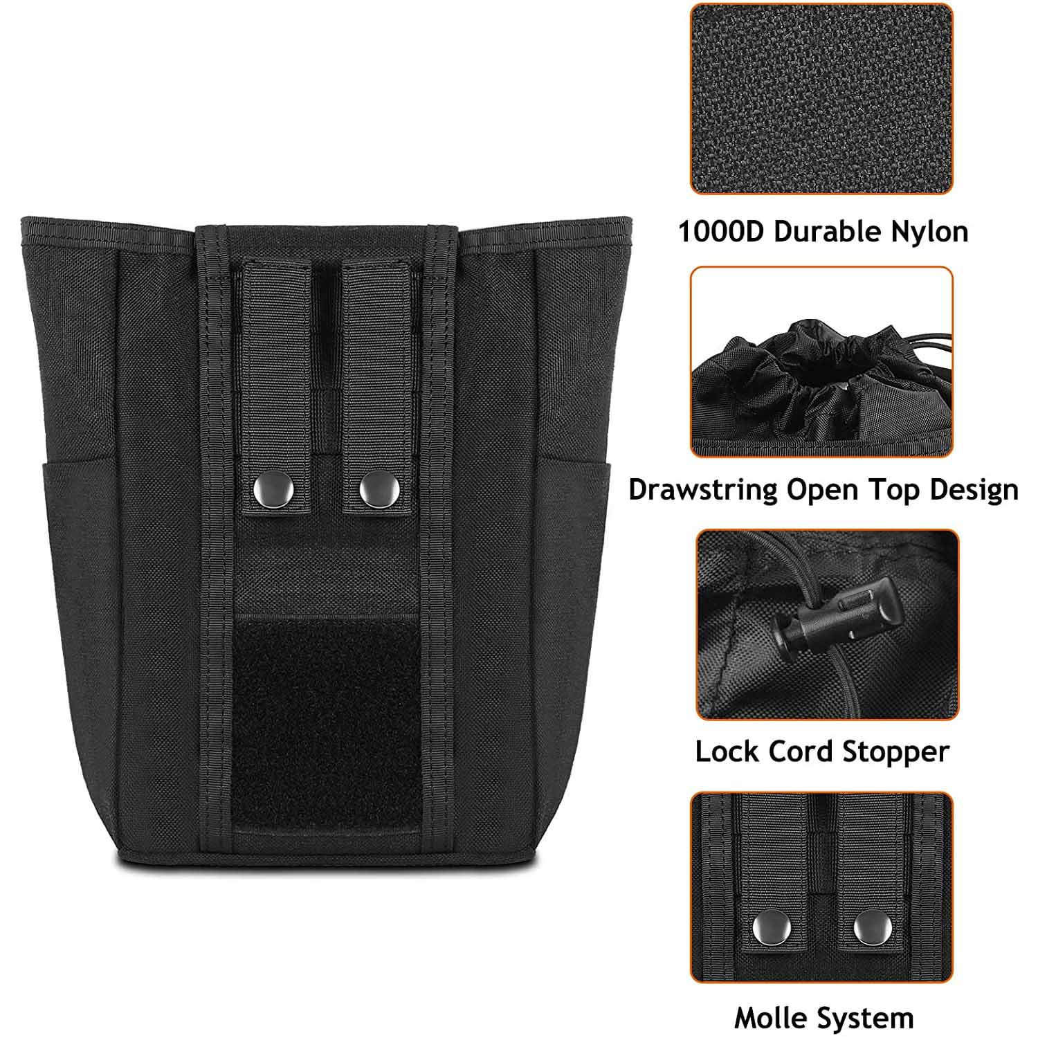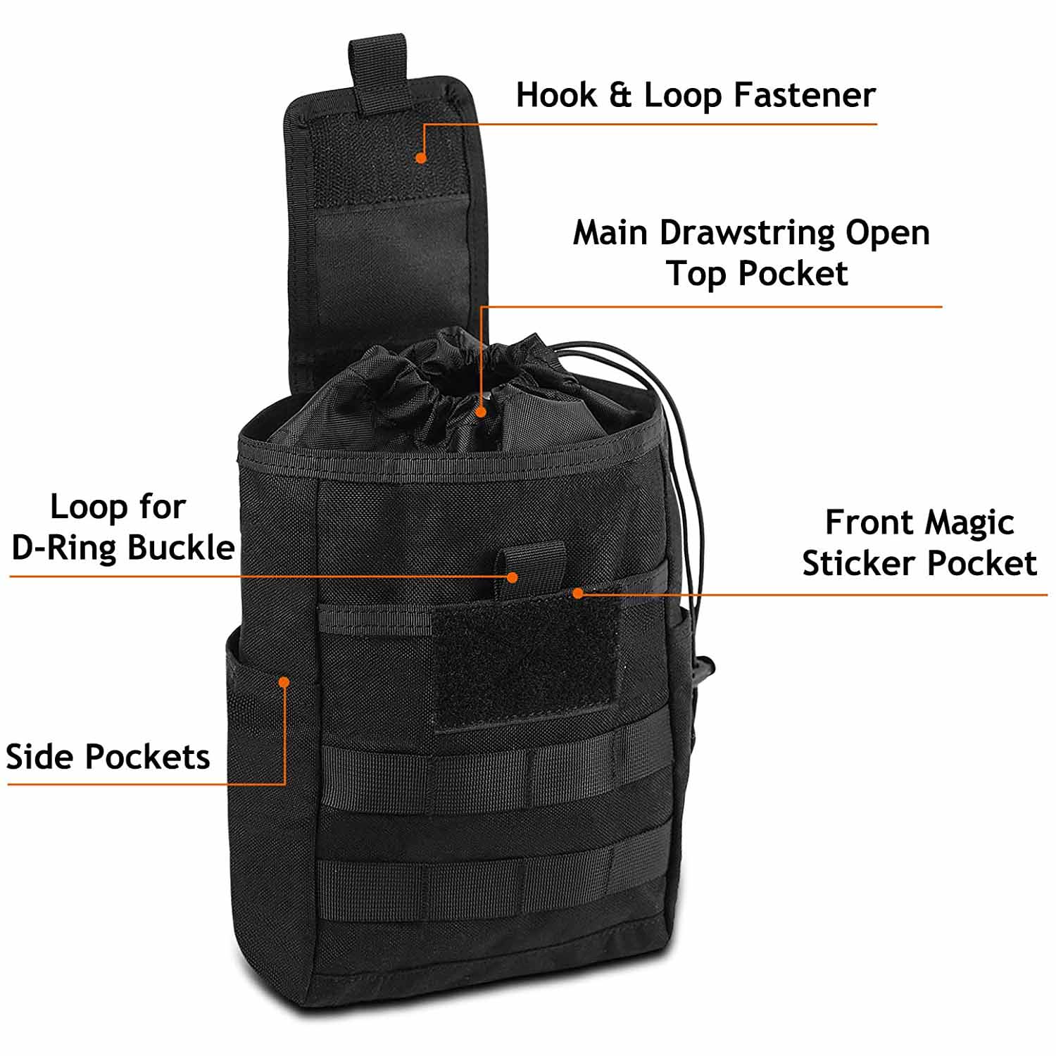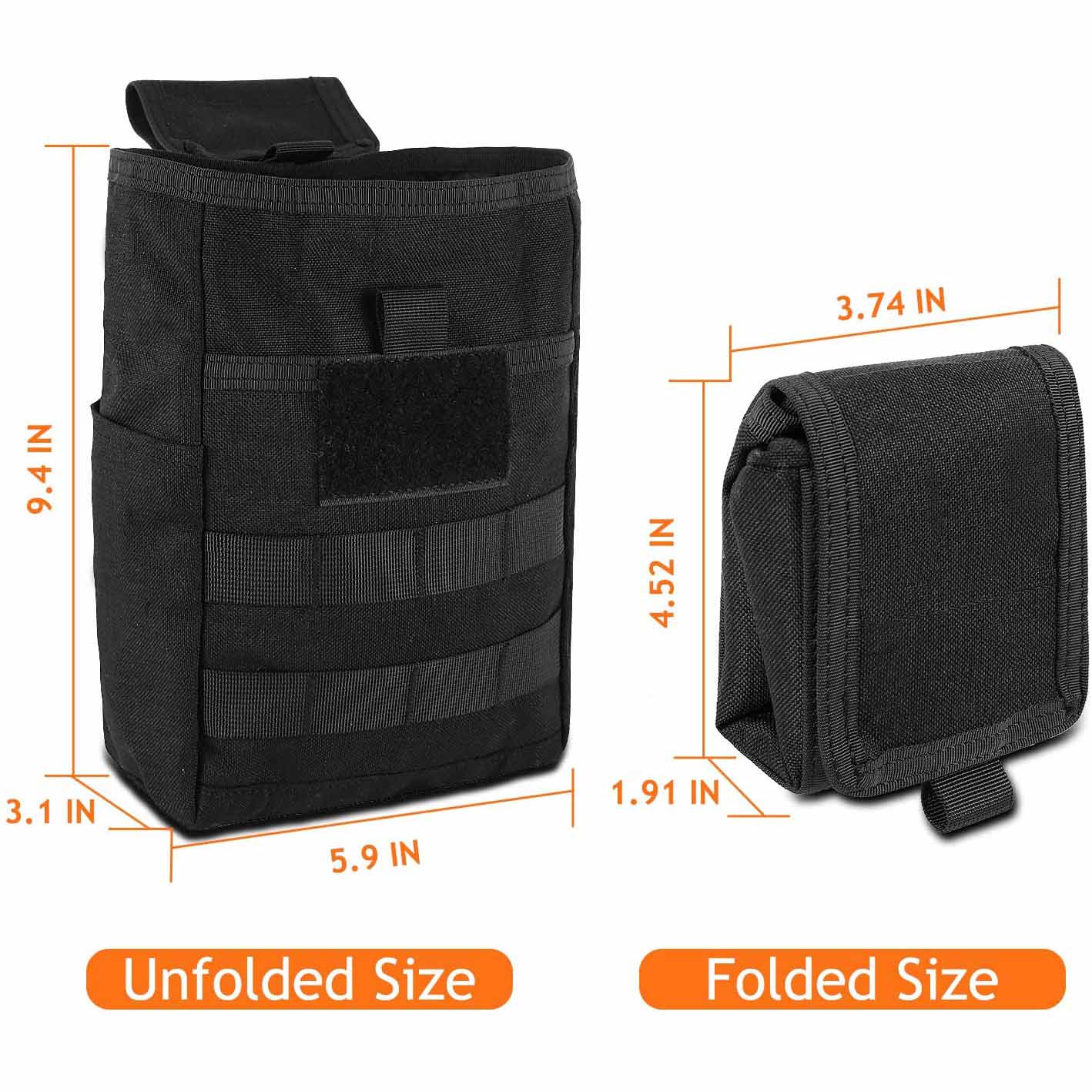 Molle utility dump pouch can be used to store magazines, ammo and other tactical gears, also can be used as a garbage bag for car, or as EDC tools pouch to put your daily tools.