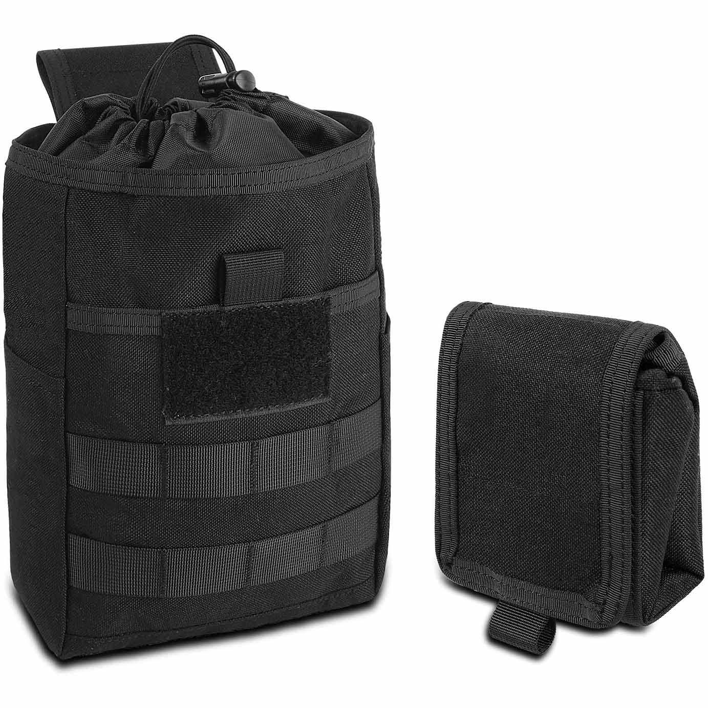 | Feature: | 1.Easy to Carry & Use: Lightweight and easy to carry. This roll-up dump pouch is designed to roll up with loop & hook closure when you don't need to use it. The folding dump pouch features a spacious main pocket with drawstring top, which keeps your mags, ammo, and smaller gear easily accessible. 2.Molle System: The ammo dump pouch with 2 rows of molle webbing on the front for attaching additional pouches or accessories, with 2 vertical straps on the back, can be attached to any molle webbing vest, bag, duty belt, or backpack, good choice for hunting, shooting, camping, hiking and other outdoor activities. |