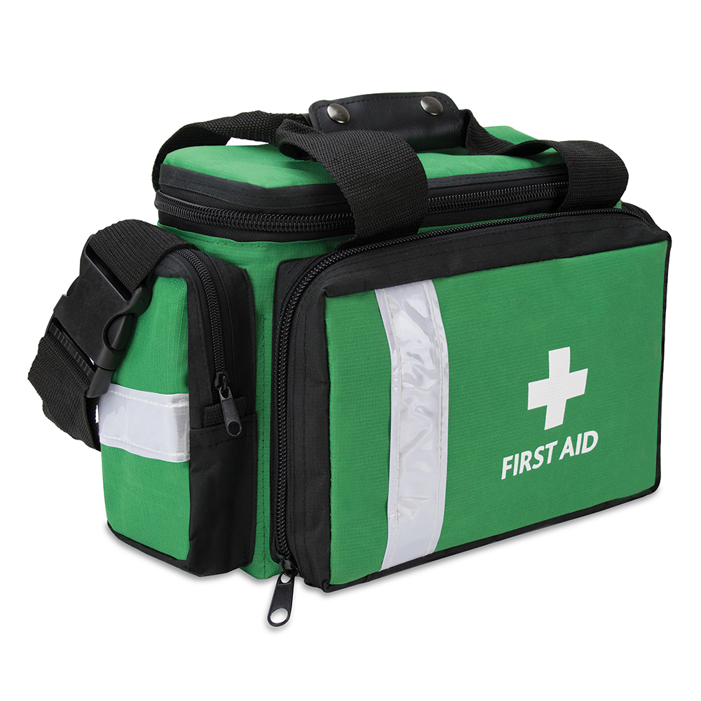 | Feature: | 1.The double zip closure and multiple compartments make the bag extremely practical and easily accessible in any emergency, with the ability to organise your content by making use of the large customisable main compartment, removable clear zipped pocket, individual zipped pockets and elastic storage loops. 2.Up to 14 compartments, with additional storage. 3.Protective padded lining. 4.Hi-Vis stripes. Strong, water-resistant material. Available printed or plain. |