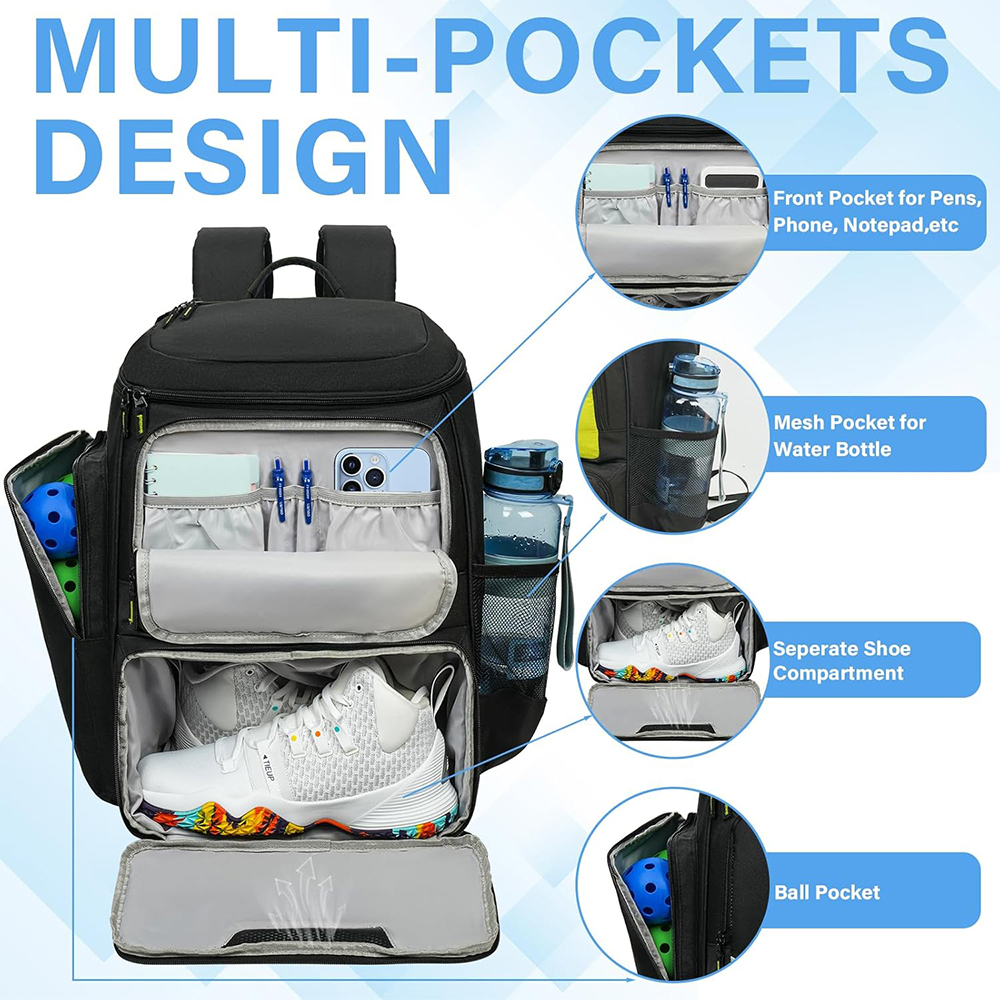 Factory Custom Unisex Polyester Pickleball Equipment Bag 3 Ways to Carry Pickleball Bag with Shoe Compartment |