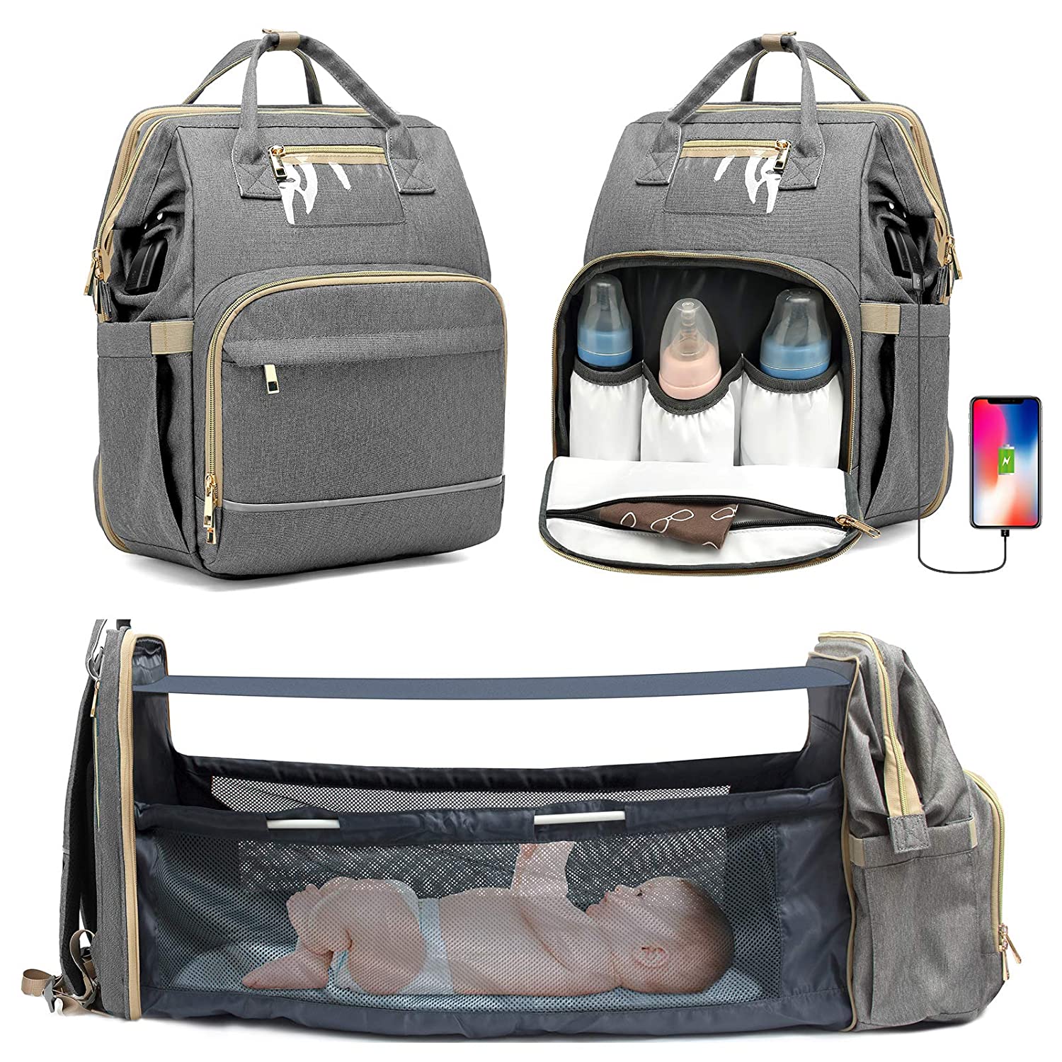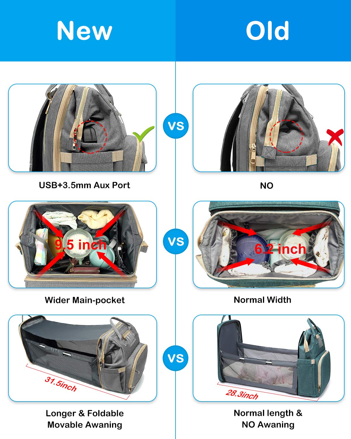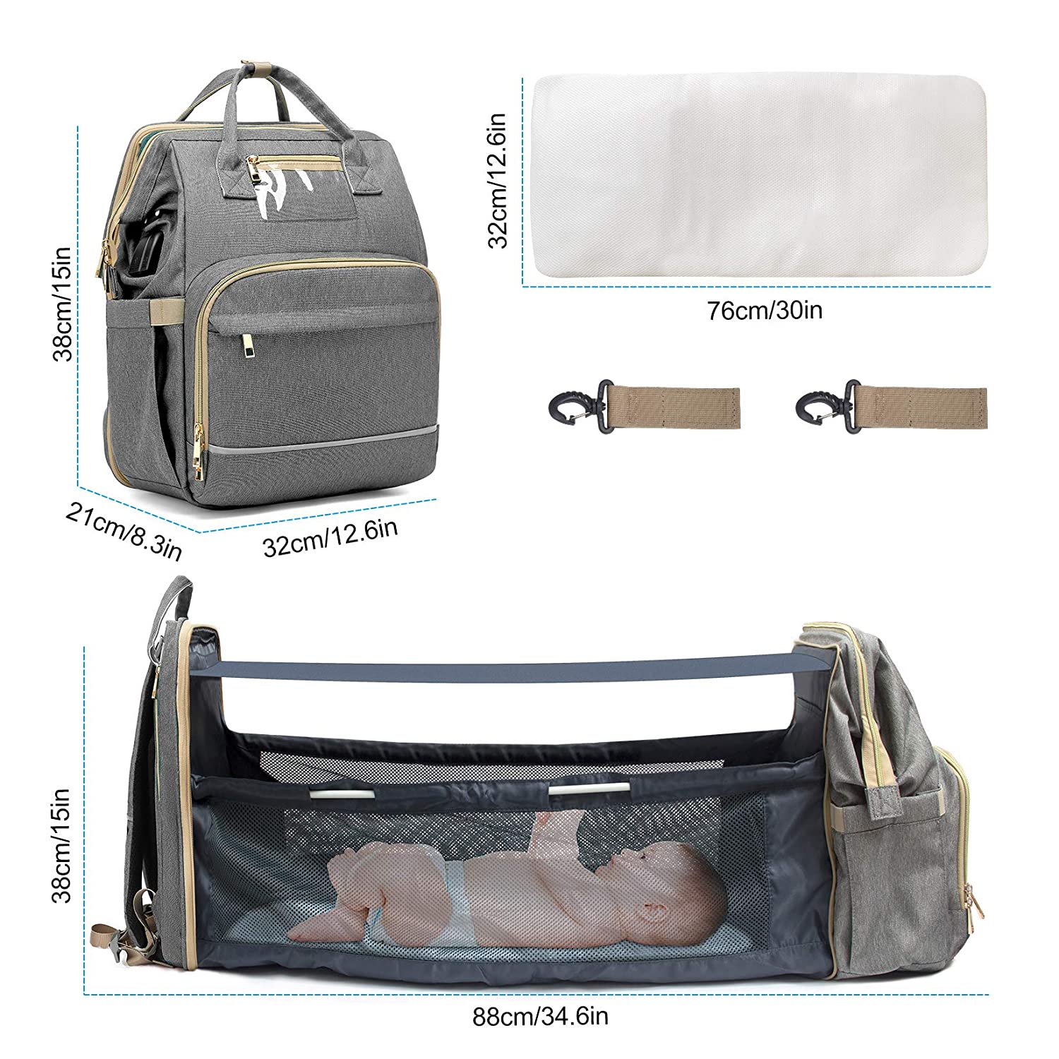 | Feature: | 1. 17 Pockets Stylish Diaper Bag Backpack: Upgrade huge capacity with 17 Pockets, spacious enough to hold most of baby essentials like tissues, baby bottles, diapers, milk powder, clothes, even a 15'' laptop. Each pocket is scientifically partitioned and some pockets are waterproof. Never worry about leaks. |