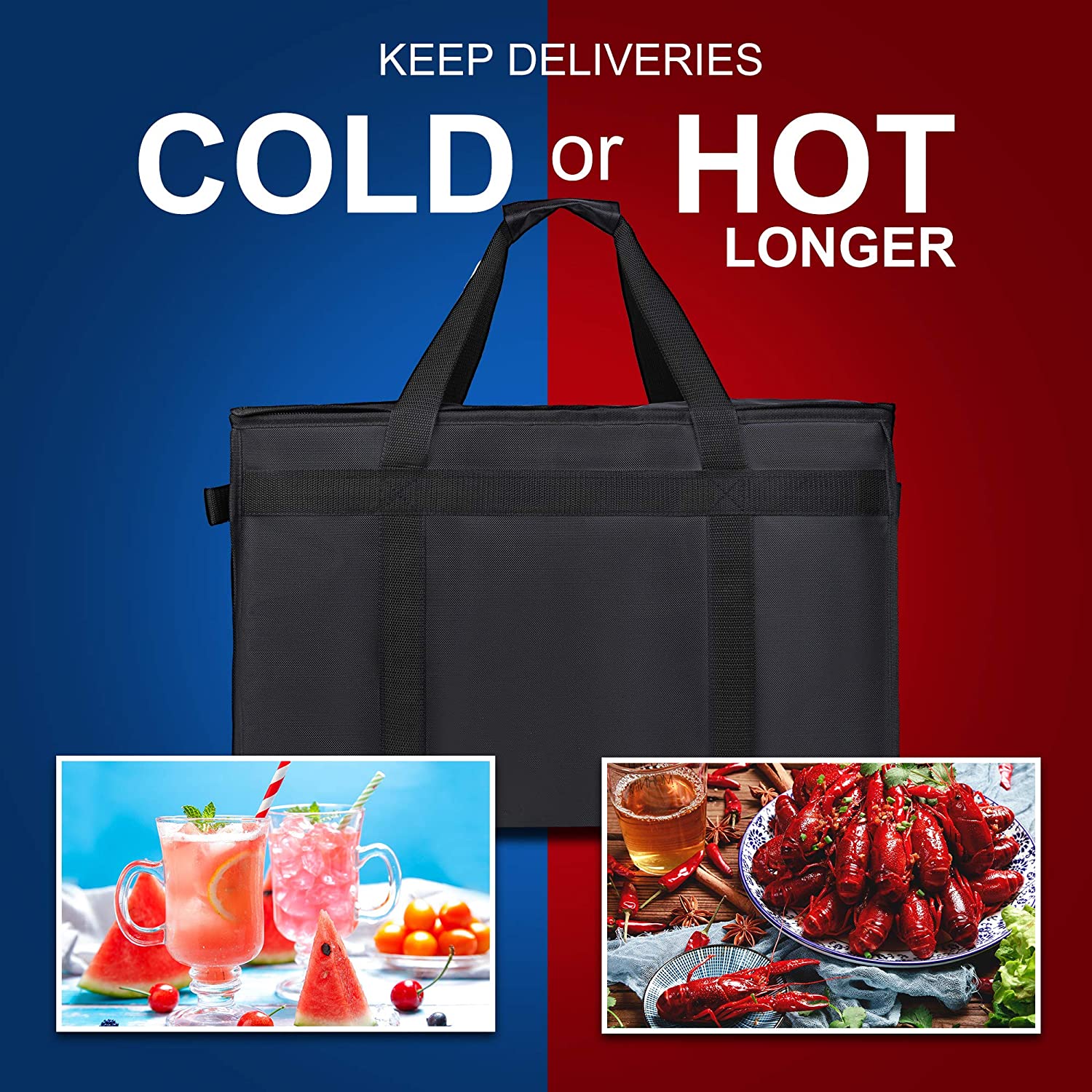 Insulated delivery bags for hot and cold food, warmer bag for carrying door dash. Eats carry catering hot bags to keep food hot. A large warm reusable bag to carry out the book and food grocery. The cooler and thermal carrying bag deliveries food. it's a perfect heat bag for delivery. the heater and caters bag set could be warming food carry bag for delivery service. The heat bags for keeping food warm and cold.