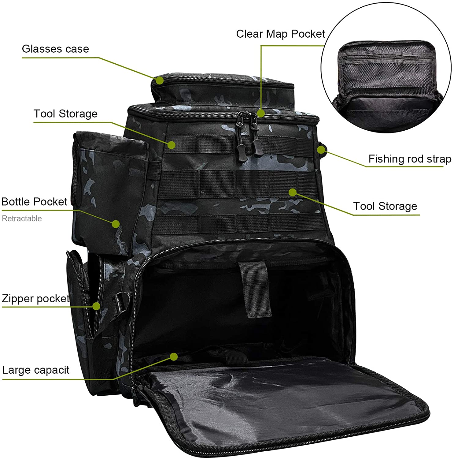 | Description: | Factory Price Large Storage Fishing Tackle Backpack 2 Fishing Rod Holders with 4 Tackle Boxes |