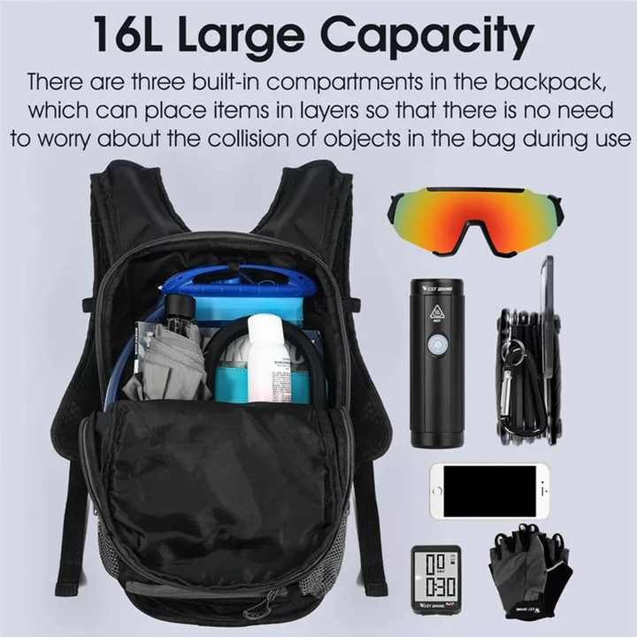 | Feature: | Spacious Hydration Backpack for Hiking: This hiking hydration backpack features several storage pockets, providing ample space for snacks, extra layers, and trail essentials. |