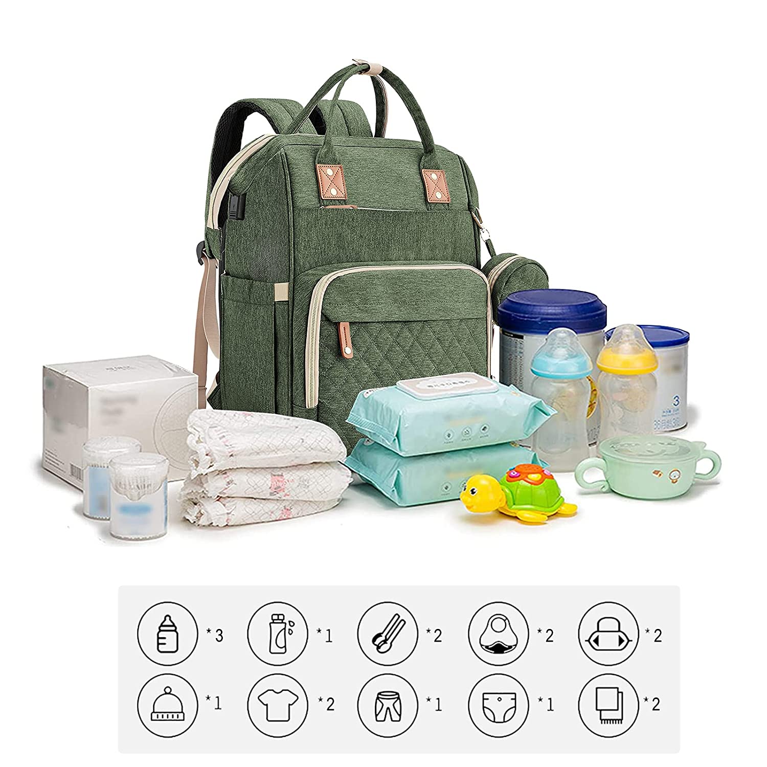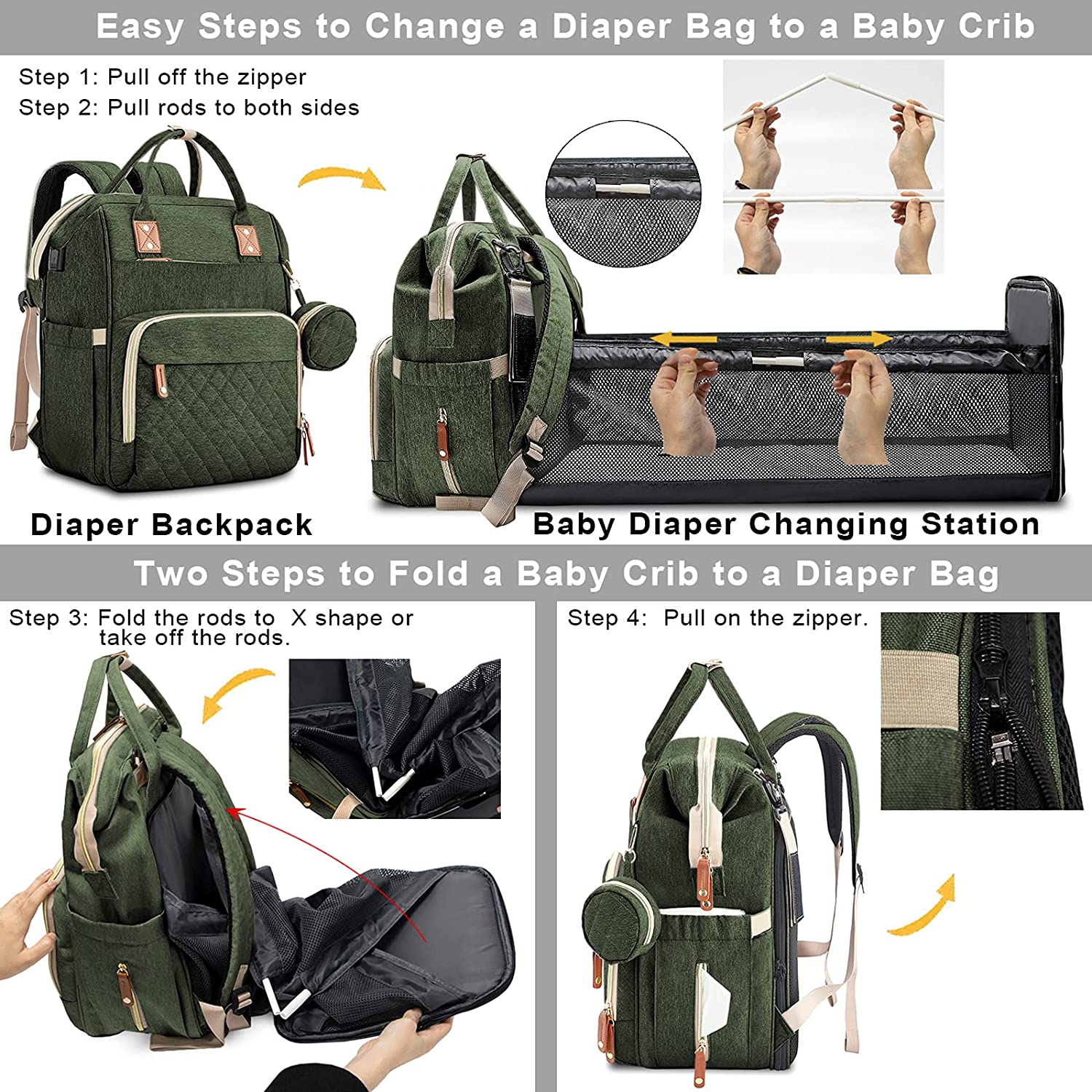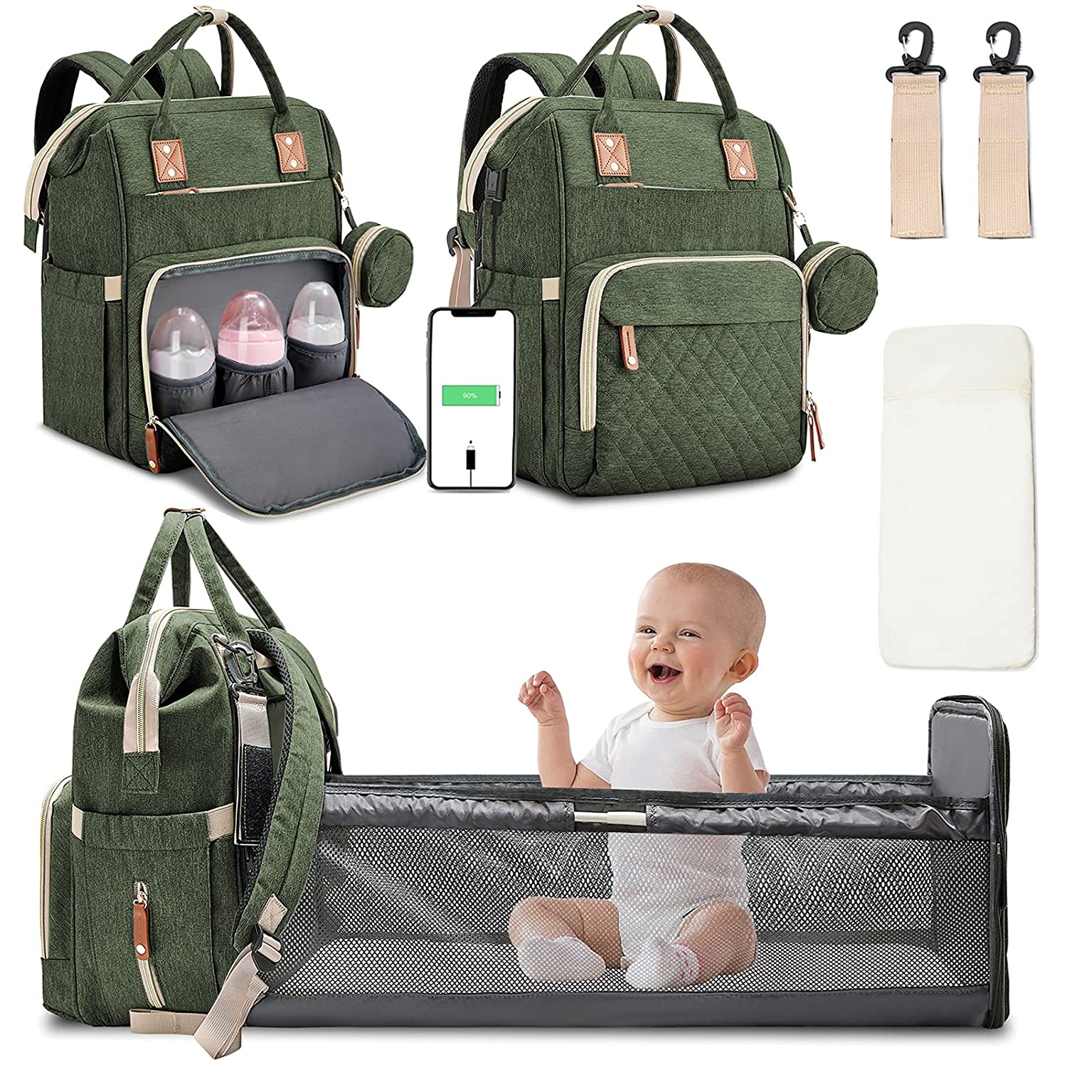 | Description: | Foldable Baby Bed Backpack with USB Port and Stroller Straps Multifunctional Nappy Diaper Travel Duffle Bag |