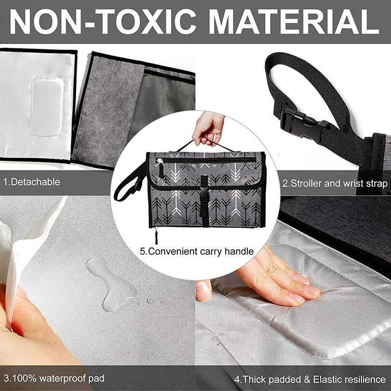 | Feature: | A LIFESAVER FOR CHANGING DIAPERS ON THE GO - This portable changing pad is designed for parents to easily change baby diapers and clothes while on the go. As a travel changing mat, it offers you a clean space to keep your baby off unhygienic surfaces. It's easy to carry around and perfect for short trips where you don't need to lug around a large diaper bag. Ideal for airplane travel and everyday use, this diaper clutch is also convenient to keep in your car for emergencies. |