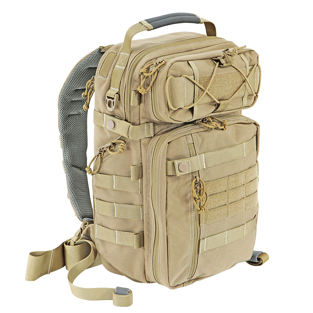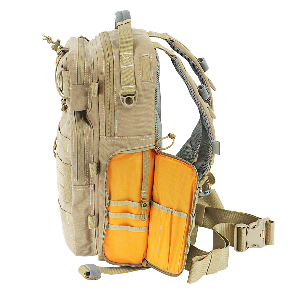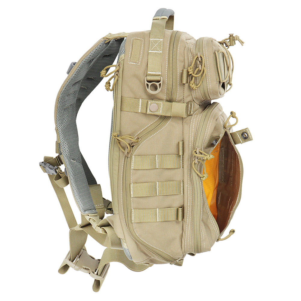 Padded main compartment and three dividers provide extra protection for your EDC (everyday carry) items, photography gear, or range gear. A dedicated laptop sleeve that can hold a 15" laptop (MacBook Pro / Air) in a slim cover. You can access the interior from top or left side, and like a slingpack, you can quickly get to your gear by swinging the backpack to your front.