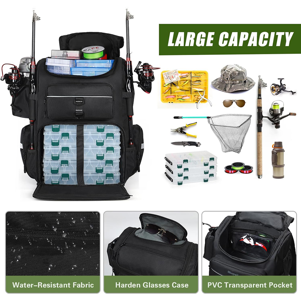 Hot Sale Custom Logo 45L Large Water-Resistant Fishing Tackle Backpack Fishing Backpack with Rod Holders |