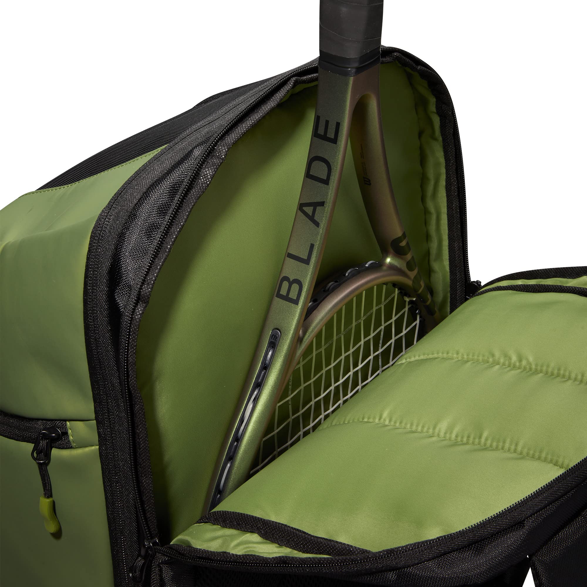 * Padded compartment with locking zippers holds up to 2 rackets