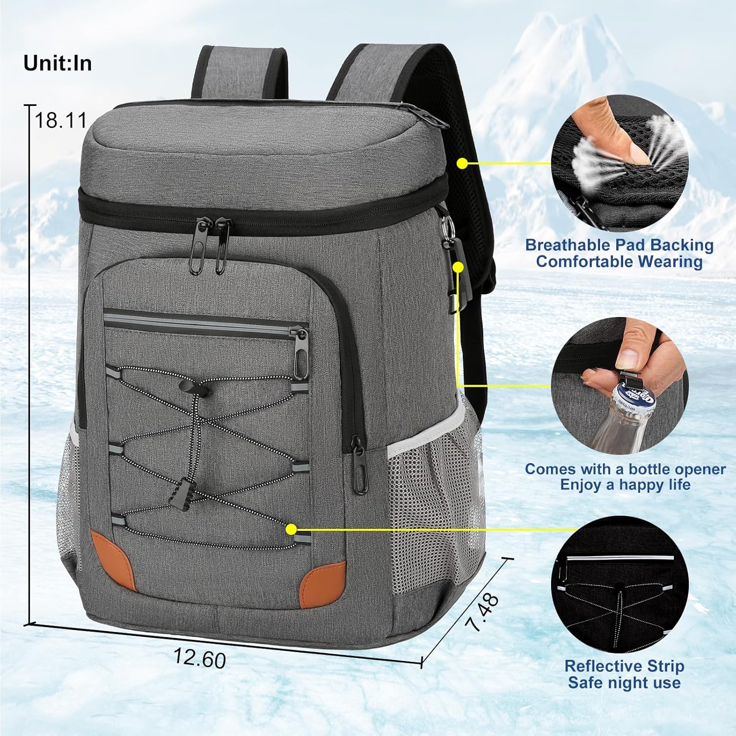 | Feature: | * 22 Hours Insulated Backpack: Thickened insulation foil foam and leak-proof liner ensures excellent insulation performance, Whether you're camping, at the beach, picnicking, hiking, traveling, boating, playing outdoors or working, Our Cooler Bag can keep your beers and food cool/hot/fresh for a long time * Large Capacity & Multi-Pocket Design Cooler: The insulated backpack Cooler provides several pockets, main bag can hold up to 36 cans(32L). 2 front zipper pockets to place your cutlery and cell phones, 4 side pockets to store Umbrellas and drinks ,there is also a top pocket for easy storage of snacks and fruit. * Multiple Functions Backpack Cooler: With this stylish beach cooler backpack, you will get a lot of compliments. The insulated cooler bag is a ideal outdoor activities partner, You can use it as an lunch box as well as a portable small cooler backpack for hiking, beach, camping, picnic, fishing, travel |