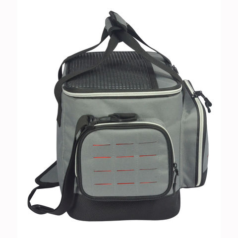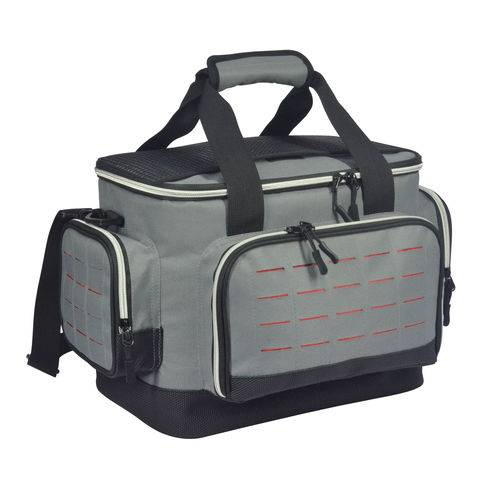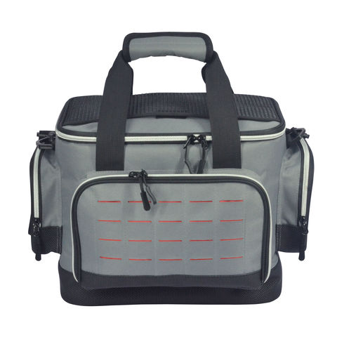 | Feature: | ORGANIZE – The tackle bag is perfect for transporting fishing gear. A large main section holds (6) 3700 size tackle box trays horizontally or vertically (not included) and internal pockets store other items such as keys, wallet or phone. 11 external zippered and slip pockets provide storage for trays, terminal tackle, tools and more. External rubber coated mesh pockets can secure leader line, rain gear, pliers, or any other items for quick access. |