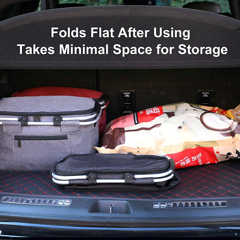 | Feature: | 1.LARGE CAPACITY DESIGN: Dimensions: 44 x 25 x 23 cm (L x W x H) about 25 L internal capacity. Large capacity can hold 36 cans (330 ml), which can meet all the beverage and food needs of 3-4 people traveling outdoors. Now only a foldable picnic basket is needed to solve all the storage problems when going out, and there is no need to carry multiple bags and containers everywhere. 2.PORTABLE & COLLAPSIBLE: Updated version includes flexible side supports that provide more structure other than sag or collapse; Foldable padded handle design is born for space-saving, convenient for carrying-on; Waterproof TPU lining & removable cloth body of the picnic basket cooler bag contributes to leakproof and easy-cleaning. A perfect carry-on fabric basket & water container. |