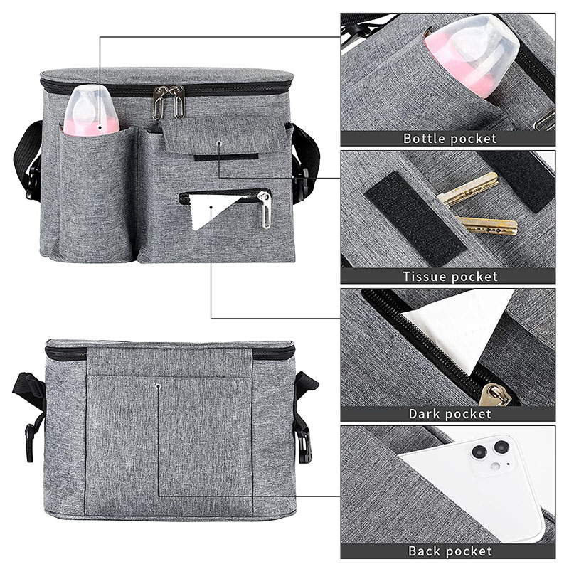 | Feature: | 1. Multi-point and large space: The stroller organizer has a bottle or small water cup strap; there is a privacy bag on the back, which can hold mobile phones, wallets, etc. Valuable objects. 2. High-quality materials: Baby stroller storage bag size: (11.81 X 5.9 X 7.87) inches; The stroller storage bags are made of high-quality materials, lightweight, strong and durable. 3. Compatible with most scaffolds: Adjustable buckles can help you get a perfect fit, avoid slipping and falling. You will also find that the adjustable strap improves versatility and makes it easier to move between strollers. Whether you are walking or running, it will remain stable on the stroller. |