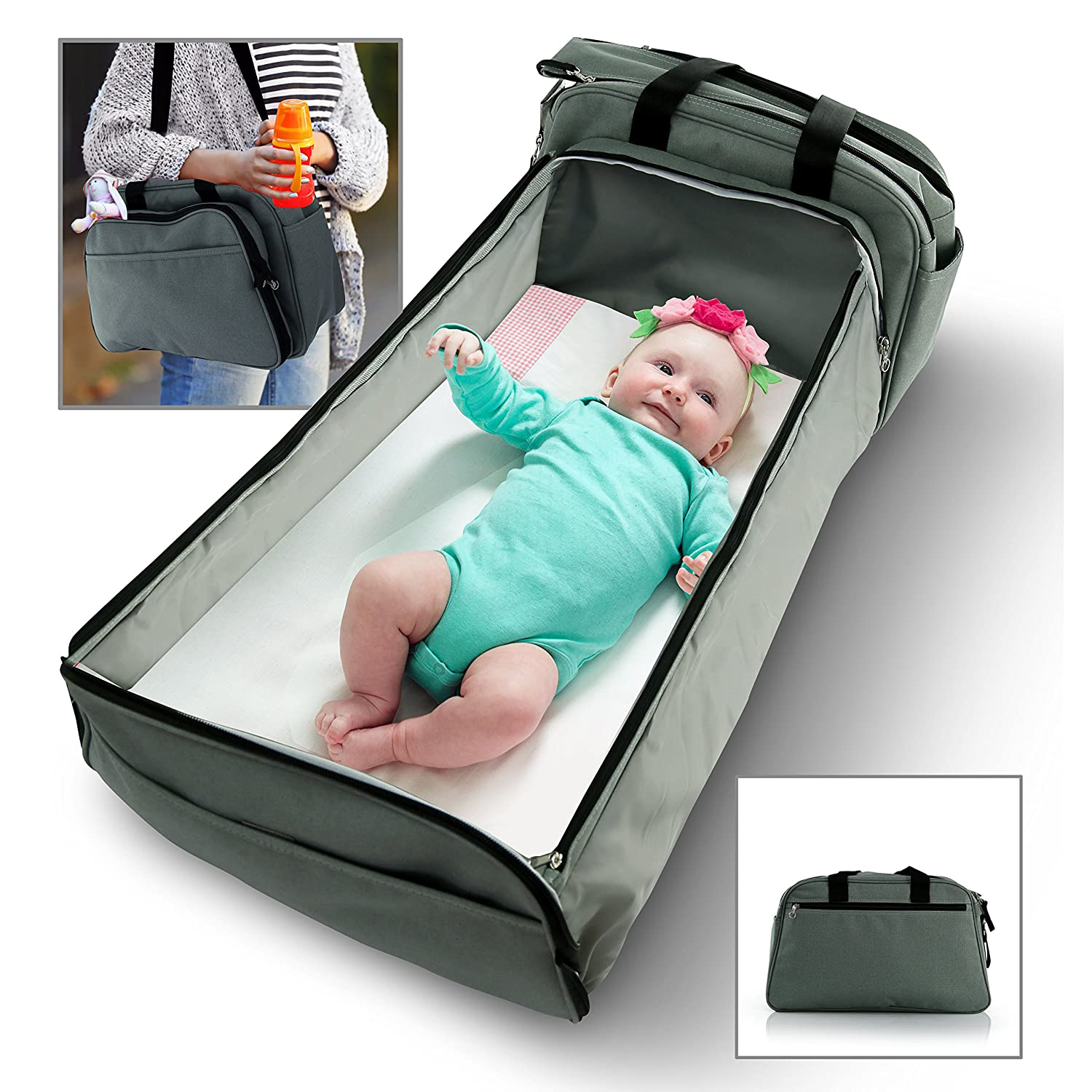 | Feature: | 1.Peace & Serenity: The portable bassinet comes with a removable mattress pad that is soft and comfortable for your baby to sleep on. The mattress pad can be removed and washed in the washing machine when it gets dirty. 2.Perfect for on the go: Easy to clean. Includes 5 zip compartments with one insulated pocket to keep your bottles hot and cold longer and it is easy to clean easy to fit onto any stroller 3.Perfect for both mom & dad: This trendy traveling co-sleeper for baby, attractive light gender-neutral color, show other parents bassinets for baby how practical you can and now be as stylish too. Carry it on the shoulder with the durable carrying strap for premium hands-free convenience. |