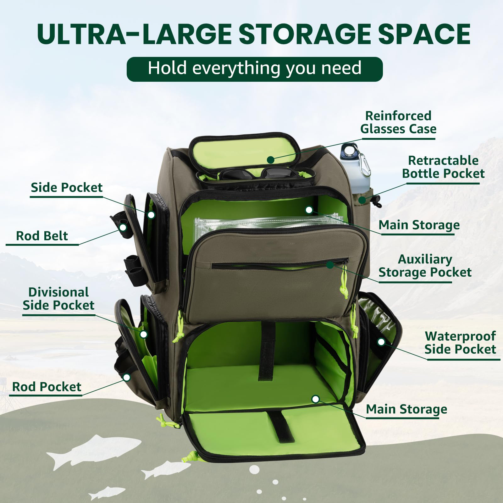 | Description: | New Design 43L Large Durable Green Fishing Tackle Backpack Fly Fishing Backpack With Rod Holder |