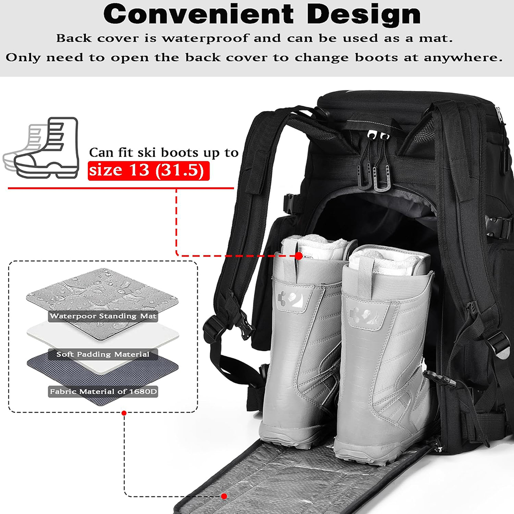 New design 55L Waterproof Backpack Snowboard Boots Travel Backpack Ski Boot Bag for Snowboarding |