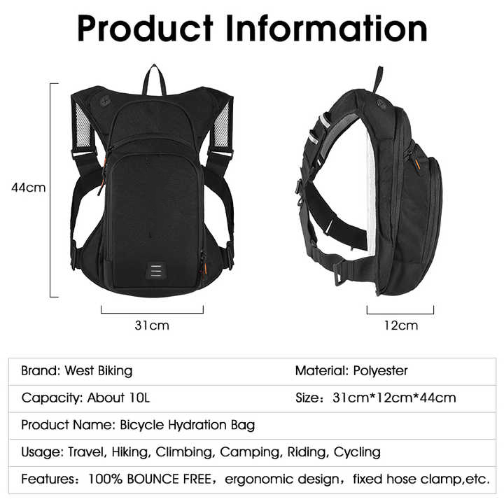 | Feature: | * Lightweight and Portable Design: The Bicycle Backpack Pouch is designed for cyclists and outdoor enthusiasts who value convenience and ease of use. * Waterproof and Breathable Material: Additionally, the breathable design allows for airflow and moisture transfer, keeping you cool and dry during long rides or hikes. * Large Capacity: This backpack is perfect for carrying essentials such as a water bottle, snacks, and a first-aid kit, making it ideal for users who want to travel light. |