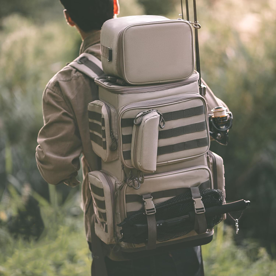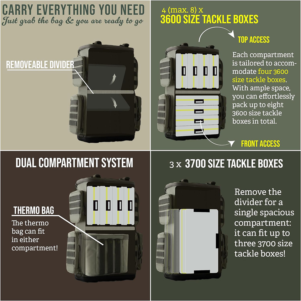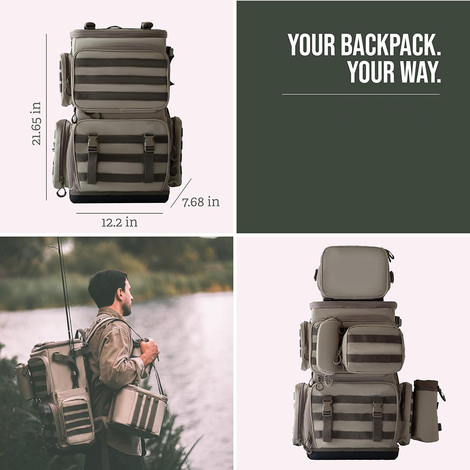 | Feature: | * SUPERIOR QUALITY: Crafted from water-resistant PVC 900D Polyester, this backpack ensures unparalleled protection for your fishing gear. Reinforced zippers and stitches keep your reels, lures, poles, and tactical gadgets secure on every adventure! |
