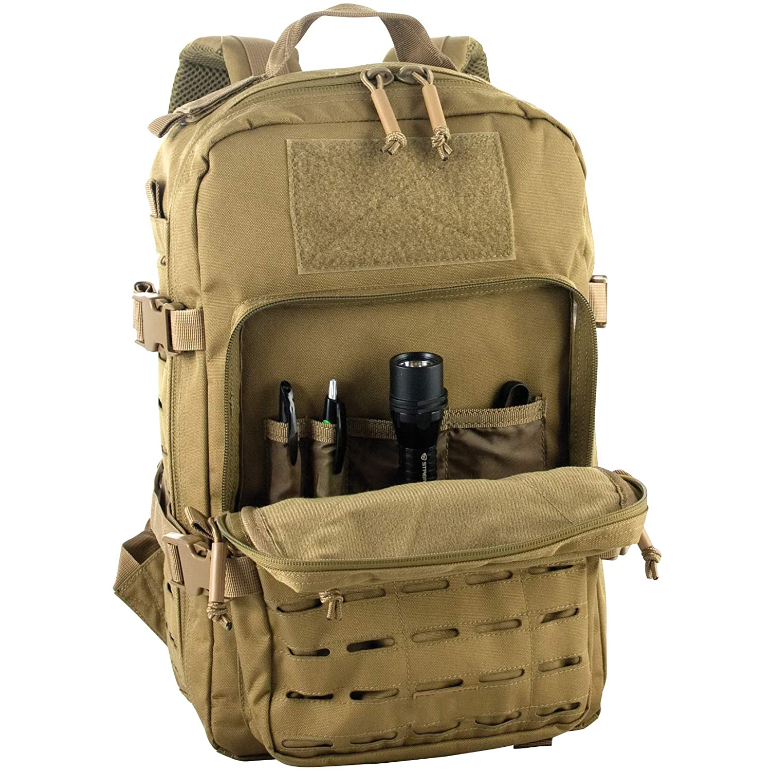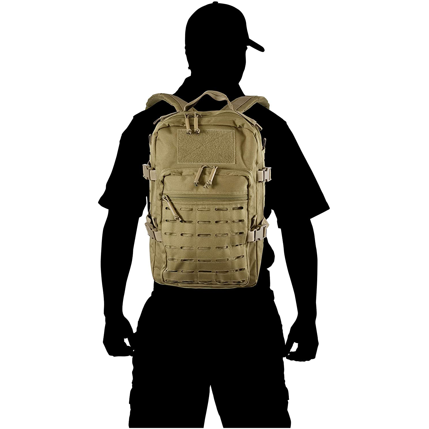 | Feature: | - Laser-cut MOLLE webbing platform for attaching additional pouches or gear. - Reinforced carry handle; Four quick-release compression straps. - Mesh ventilated padded back panel with fully adjustable, contoured and padded shoulder straps. - Hydration bladder compatible. |