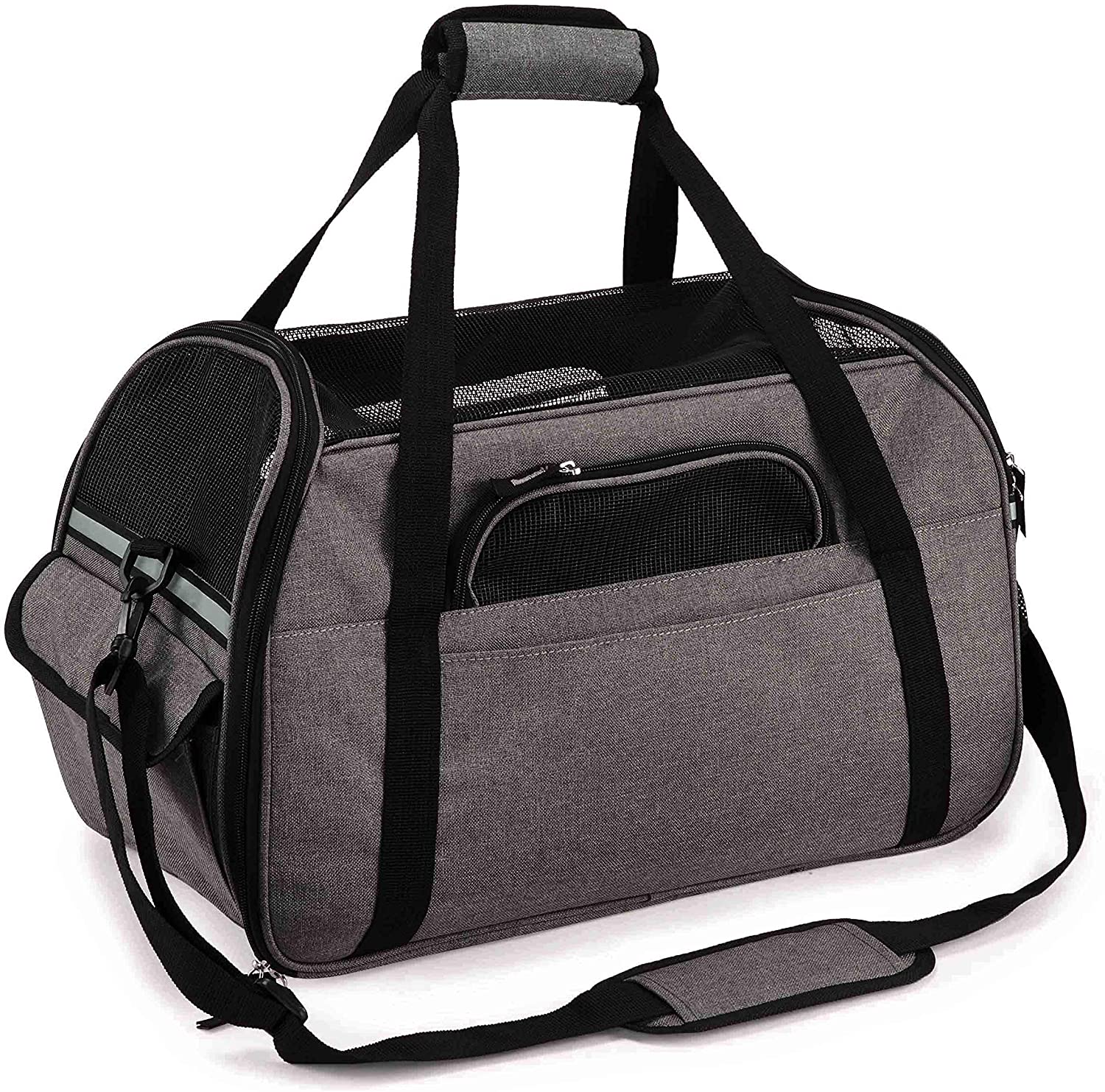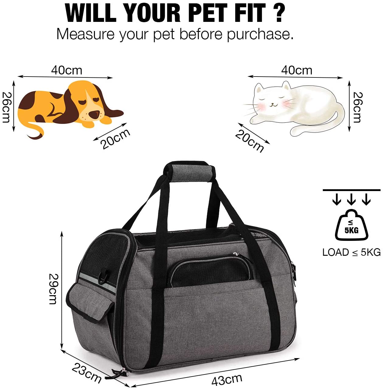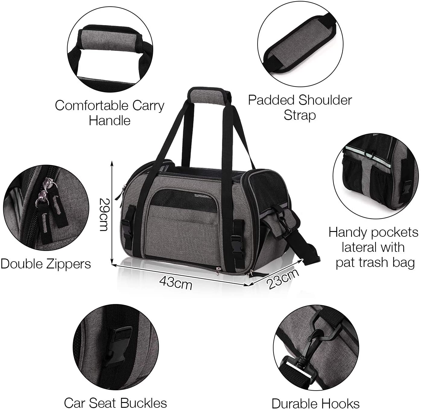 | Feature: | * MULTIFONCTIONNEL - Le design de ce sac transport chien est bien pratique pour les voyages en avion, train et voiture. Vous pouvez fixer ce sac de transport chat sur le siège de la voiture par la ceinture de sécurité. Et vous pouvez aussi attacher ce sac à votre valisette à roulettes. * BONNE VENTILATION - Les nombreuses aérations de ce sac de transport pour chat permettent votre animal de compagnie de voir tout autour de lui et au dessus, et permettent des chiots de respirer à l'aise. Il y a deux ouvertures possibles: une petite frontale et une grande laterale. |
