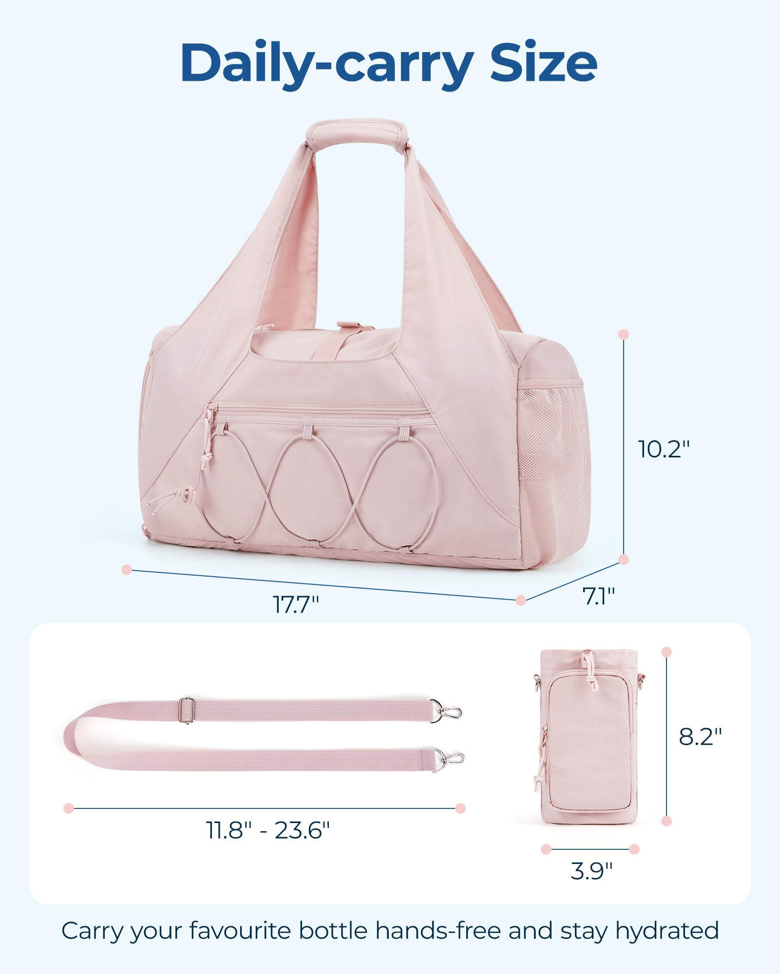 | Feature: | Extra Crossbody Water Bottle Bag: Strolling around and commuting with you. Along with drawstring closure and detachable shoulder strap for carrying your various bottle hands-free and staying hydrated, also a padded zipper pocket for phone storage and protection Portable & Lightweight: Gym bag designed for the active lifestyle, offering ample storage space while remaining remarkably lightweight. Made from lightweight and water-resistant fabric for all-day comfort and easy cleaning. Versatile Tote Bag: A day full of plans calls for a sports duffle bag full of storage solutions. Along with a convenient yoga mat strap for hands-free carrying, a surprise outer velcro slip pocket for quick access. Tote your workout essentials for gym, travel or away for the weekend. |