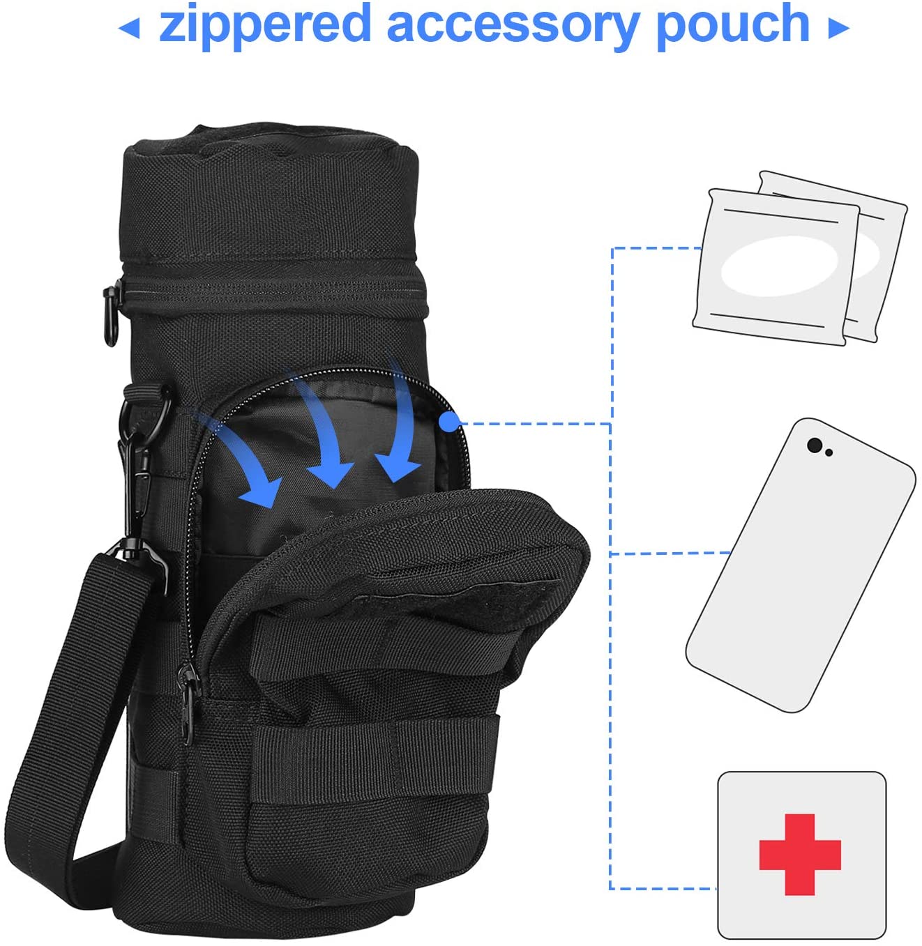 | Description: | Tactical MOLLE Hydration Carrier Bag with Extra Accessory Pouch And Detachable Shoulder Strap |