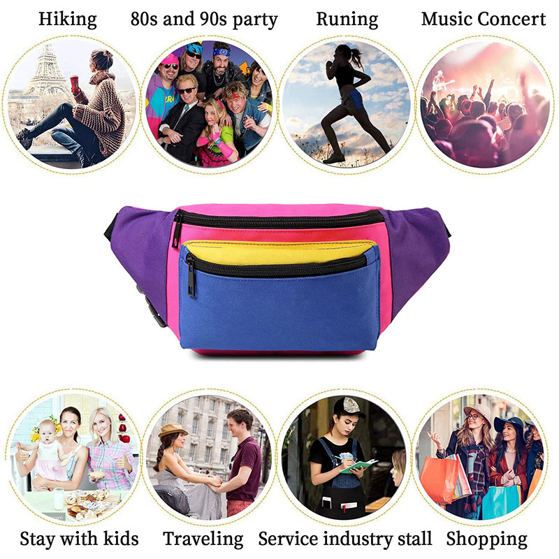 USE - This is a great way to be in style for just about any occasion. You can use these fanny packs for theme parks, working out, traveling, the 80s and 90s parties, music festivals, raves, walking, hiking, biking, or just as a piece of your daily attire.